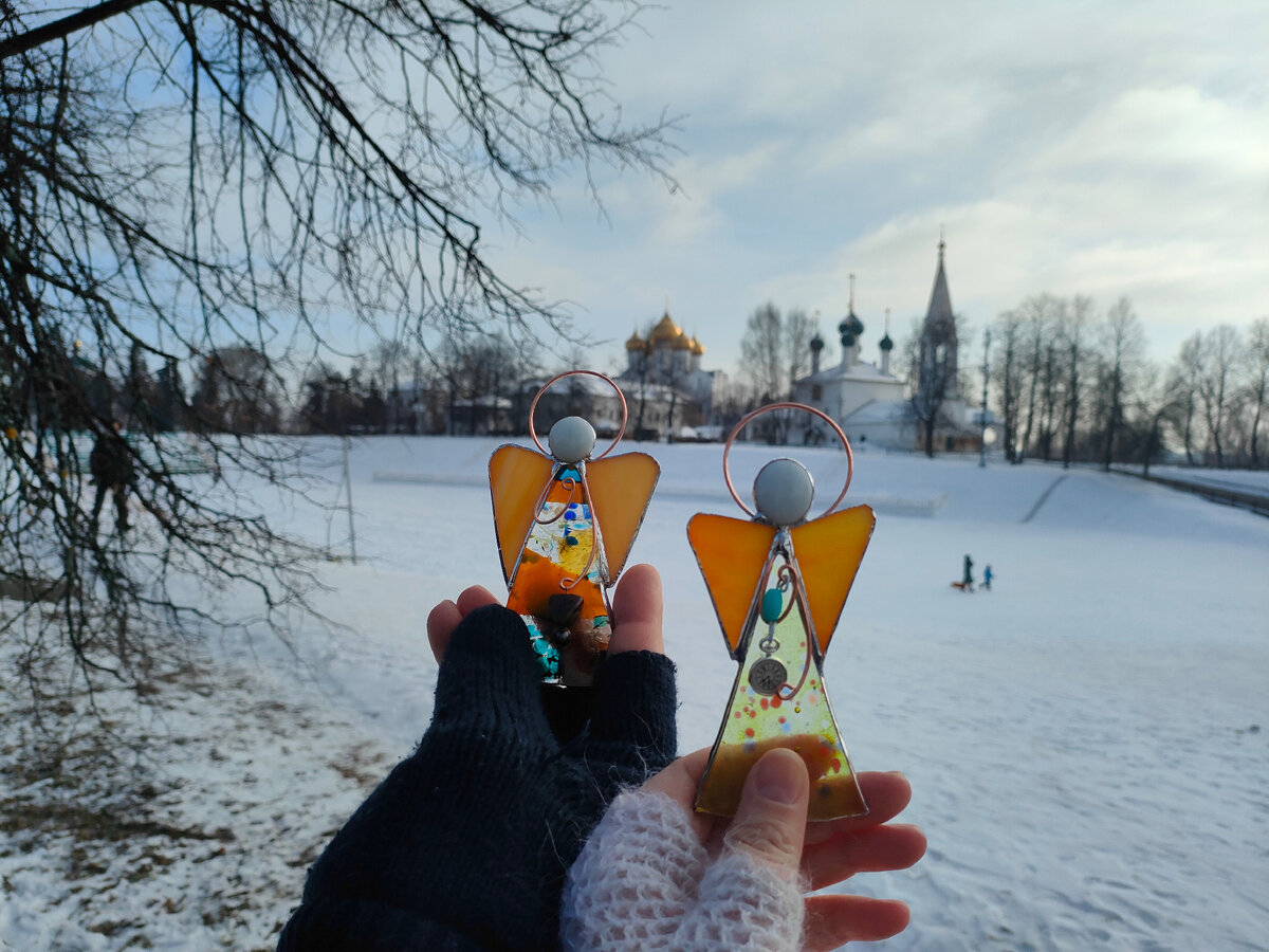 Мастер класс витражной технике в стиле Тиффани. Я люблю делать что-то своими руками, в этот раз был витраж в стиле Тиффани. Делали ангелочков. Знаете, а круто из города привезти сувенир, сделанный своими руками, да ещё в принципе по цене того же самого сувенира? Вот я и подумала,почему бы и нет? Итог. Понравилось. Хотя паять я боялась, очень боялась. Плюс посмотрели и другие работы, уже настоящих мастеров. Так что - рекомендую. Кстати, у них есть и более сложные мастер классы.