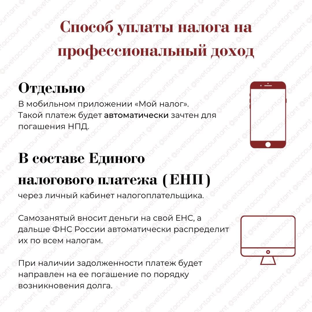 Что важно знать: ✅Срок уплаты с 2023 года — не позднее 28 числа следующего месяца. ✅Подавать уведомления об исчисленных налогах самозанятым не надо❗️ ✅Сумму к уплате можно увидеть и в приложении «Мой налог», и в личном кабинете самозанятого.