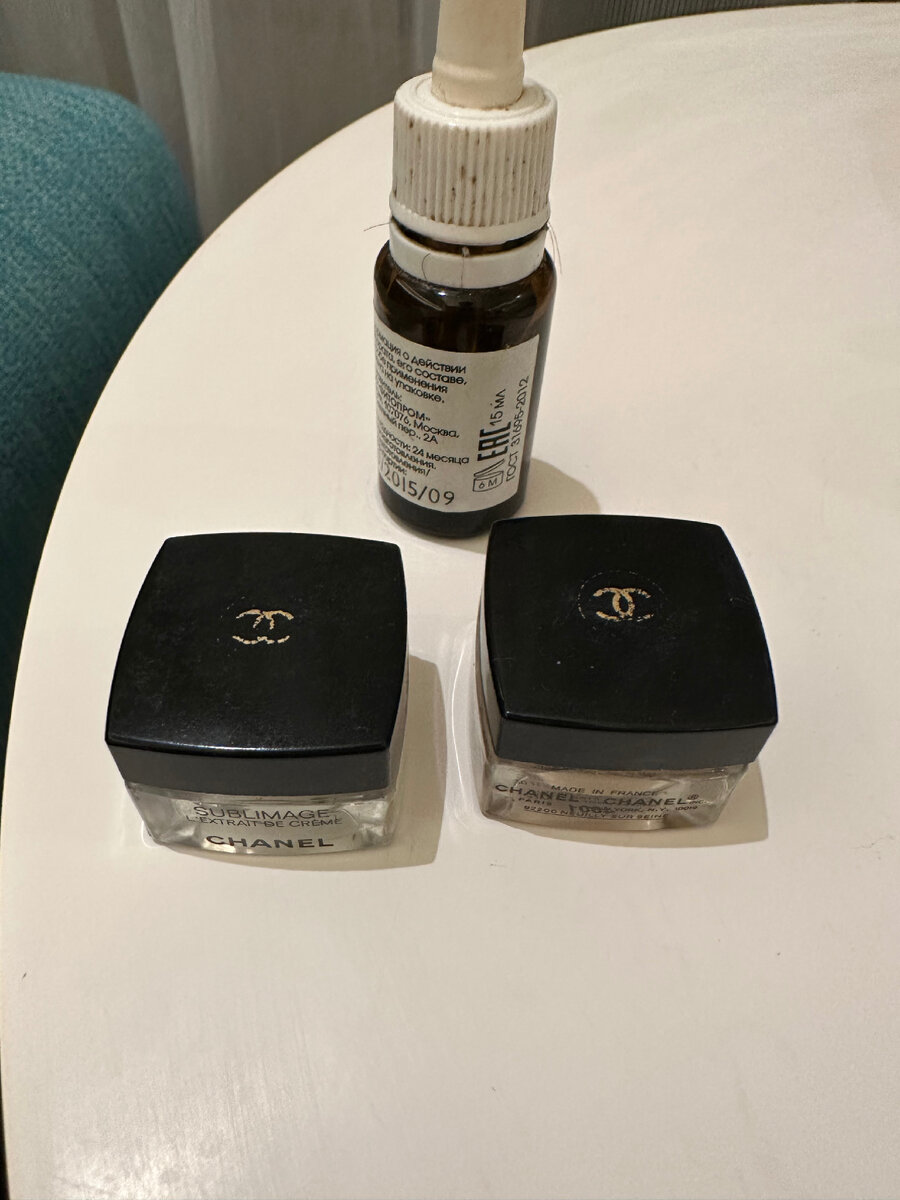 Первый, казалось бы, очевидный способ - это переложить средство в тару меньшего об’ема. Не тащить с собой 500 громовую бадью с баттером для тела, а отложить 150 грамм в подходящую емкость. Отлить парфюм в атомайзер. Мицелярку перелить в 20-миллиметровый флакончик. Тару можно купить в Летуаль, ноты предпочитаю сэкономить - сохраняю красивые баночки из-под других средств. Здесь на фото баночка из-под крема для век от Chanel - я в нее отлила тональник, а во вторую - крем для рук, его я ношу с собой в косметичке. Во флаконе из-под сыворотки - средство для кончиков волос Silk infusion - тоже отлито из большой банки.