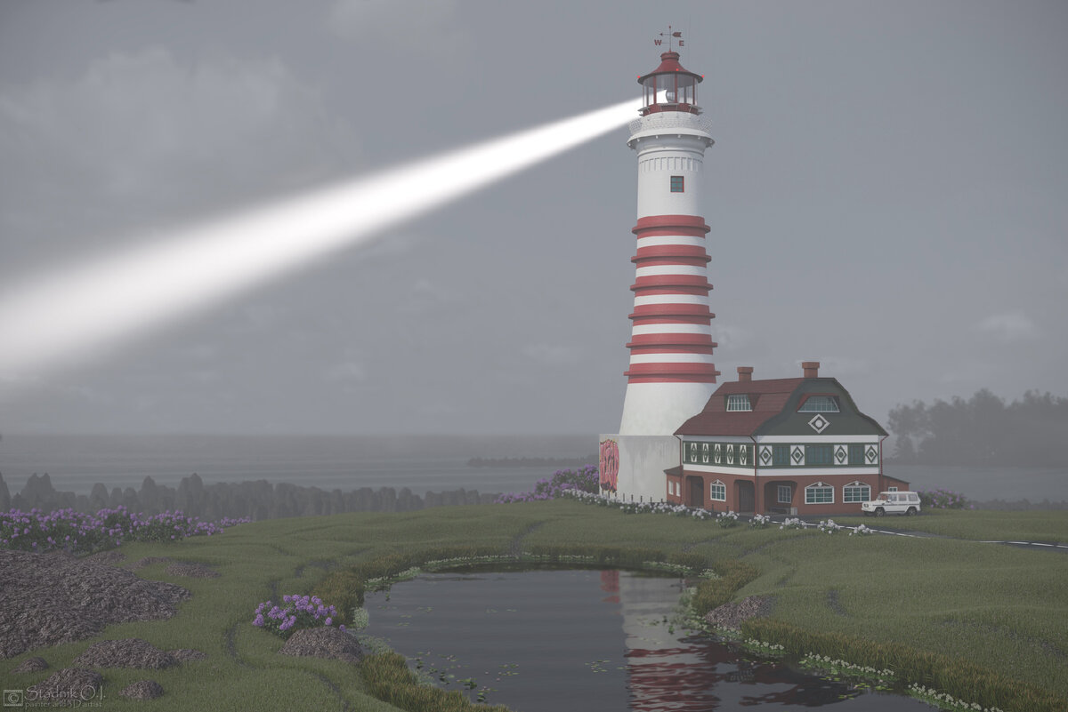 3D визуализация: "Маяк на берегу океана в тумане." "Lighthouse on the ocean in the fog." 雾中海洋上的灯塔 SOFT: 3Ds Max, Corona render, Photoshop