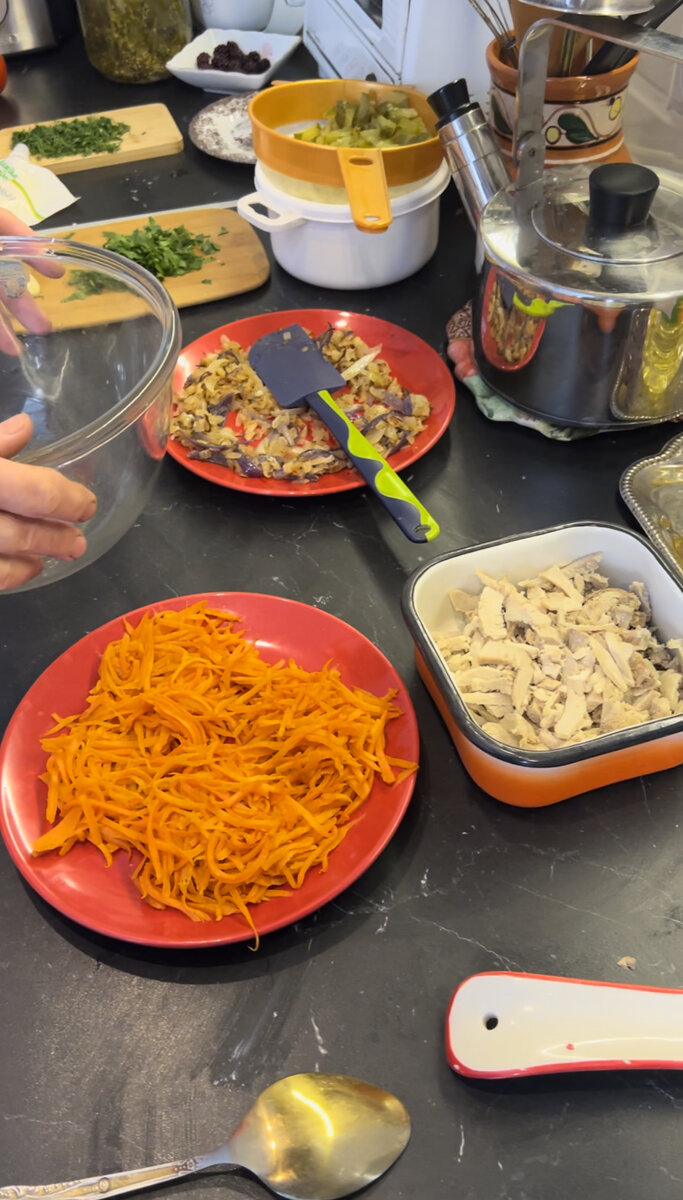 Привет, друзья! Вспомнила сегодня очень простой, но не менее вкусный салат и на праздничный стол и на будни. В состав салата входит мясо, причем любое - можно взять свинину, курицу, говядину. Смотрите по своим вкусовым предпочтениям. Салат все равно будет одобрен вашими домочадцами. Итак, мясо, которое вы выберете, сварить и нашинковать тонком соломкой. Лук нарезать мелко и обжарить. Морковь натереть на терке для корейской моркови и тоже обжарить, но отдельно от лука. Все остудить. Смешать с кусочками соленого огурца, добавить зелень петрушки, пропущенный через пресс чеснок и заправить майонезом. Салат готов, очень вкусный, из доступных продуктов и времени на приготовление занимает не много. Можете украсить по своему усмотрению. Состав: 300 грамм мяса любого. 1 луковица, 2 средних моркови, 3 средних маринованных огурца, зелень петрушки, майонез. Спасибо, что дочитали статью до конца, буду рада вашей поддержке.