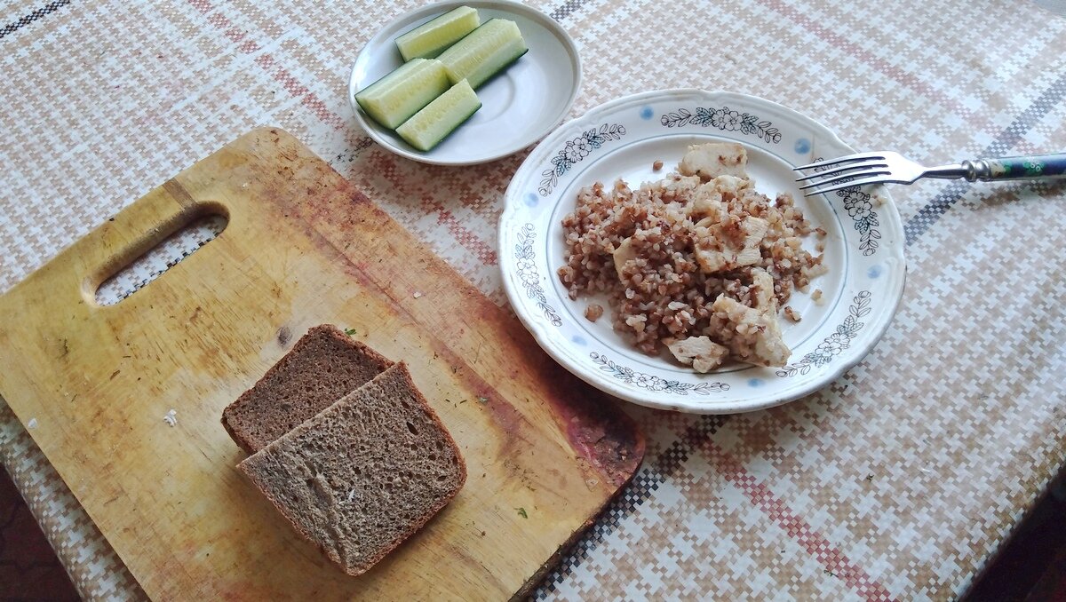 Четыре прошедших дня у меня на обед было вот это блюдо. Расскажу, что это такое, хотя и так видно. В воскресенье отвариваю куриное филе в подсолёной воде. Когда готово, достаю и охлаждаю. Потом варю рассыпчатую гречку, тоже охлаждаю. Всё это закрываю в двух пластиковых контейнерах и храню в холодильнике. На рабочей неделе, в середине дня, прибегаю домой, достаю два контейнера из холодильника. От куска отварного филе отрезаю три-четыре ломтика, и поджариваю их на сковороде с маслом. Когда чуть подрумянятся, засыпаю сверху гречкой и прогреваю дальше. Пока греется, можно нарезать огурец и хлеб. Ну и всё! Вполне себе неплохой обед готов. Быстро и вкусно. Впрочем, кому как. Лично мне повезло, что я весьма неприхотливый. :) Здесь на фотке курочки остался уже маленький кусочек, остальное успел съесть в предыдущие дни. Как и гречку. Просто поздно сообразил, что можно сфоткать и закинуть в блог. :)