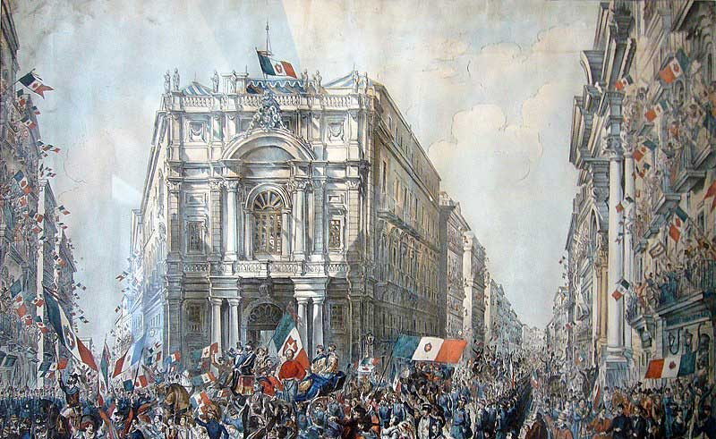 В 1859 году Королевство Сардинии, возглавляемое правителем Камилло ди Кавуром, начало войну с Австрией. В ходе этой войны было заключено союзное соглашение между Королевством Сардинии и Францией, что позволило победить австрийские войска и получить Ломбардию.