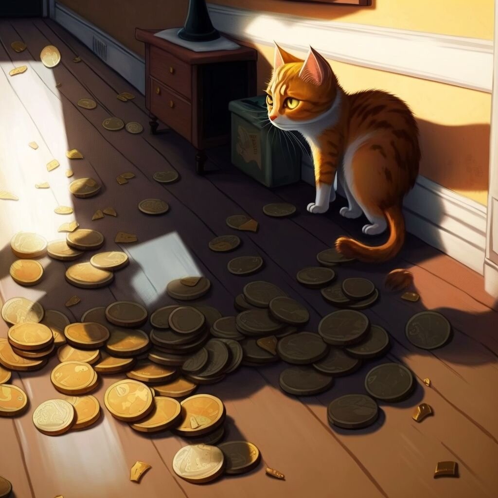 Котенок, который накопил на мечту Все началось с того, что любопытный котенок обнаружил кучу монет в коридоре квартиры своего хозяина. Монеты были разбросаны по полу, и котенок понятия не имел, почему они там оказались. Но вместо того, чтобы оставить все как есть, котенок решил взять дело в свои лапы. Первым делом котенок собрал все монеты в одном месте. Затем он стал носить их одну за другой в угол гостиной. Котенок был так решителен, что даже умудрился протащить по полу несколько крупных монет. Когда котенок закончил, он собрал все монеты в одном месте и с гордостью посмотрел на свою работу. Он накопил достаточно денег, чтобы купить что-то особенное! На что же котенок копил деньги? После нескольких дней тщательного обдумывания котенок решил, что хочет купить себе мечту. Поэтому он пошел в зоомагазин и купил игрушечную мышь с пушистым хвостом. Котенок был так счастлив своей покупке, что не мог перестать играть с ней. Каждую ночь он прижимался к игрушечной мышке и мечтал о приключ