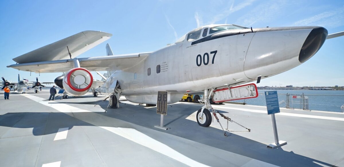 Поэтому просто обычная история времен Холодной войны. Расскажу вам о реактивном послевоенном самолете, у которого на борту было семь членов экипажа и ни одного катапультируемого кресла. Речь пойдет о Дугласе А-3 Скайуорриор, и его модификации ЕА-3B. Сам самолет начал разрабатываться в 1949 году, первый полет прототип совершил в 1952, а в 1956 году поступил на службу. Первоначально флотский бомбардировщик, предназначенный для несения атомной бомбы, он был предназначен для высотных полетов, и потому катапультируемые кресла не ставились для экономии веса. В 1973 году, кстати, компания получила иск от вдовы погибшего во Вьетнаме члена экипажа А-3В на эту тему.