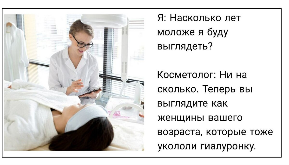 При этой косметологии вы можете прекрасно выглядеть, но вы стареете, у вас нарушается лимфоотток, у вас нарушается миграция, нарушается огромное количество процессов, и ускоряются процессы разрушения тканей. Вы стареете с невероятной скоростью. Вред уколов гиалуроновой кислоты поражает своими масштабами. И это не я придумала, на эту тему есть много исследований.