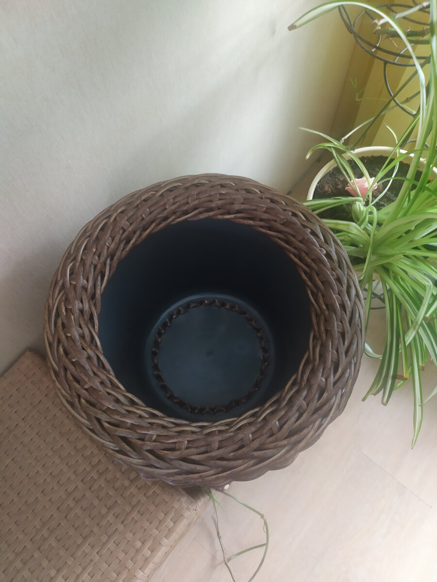 Кашпо из полиротанга ,цвет тёмный орех. Украсит интерьер дома, террасы, квартиры или участка. Не выгорает и не боится воды, можно помыть водой из шланга. Очень стильно смотрятся 2 или 3 и более кашпо . Скидки с изделий от трёх и более штук.https://vk.com/market-212003636?w=product-212003636_7391938%2Fquery