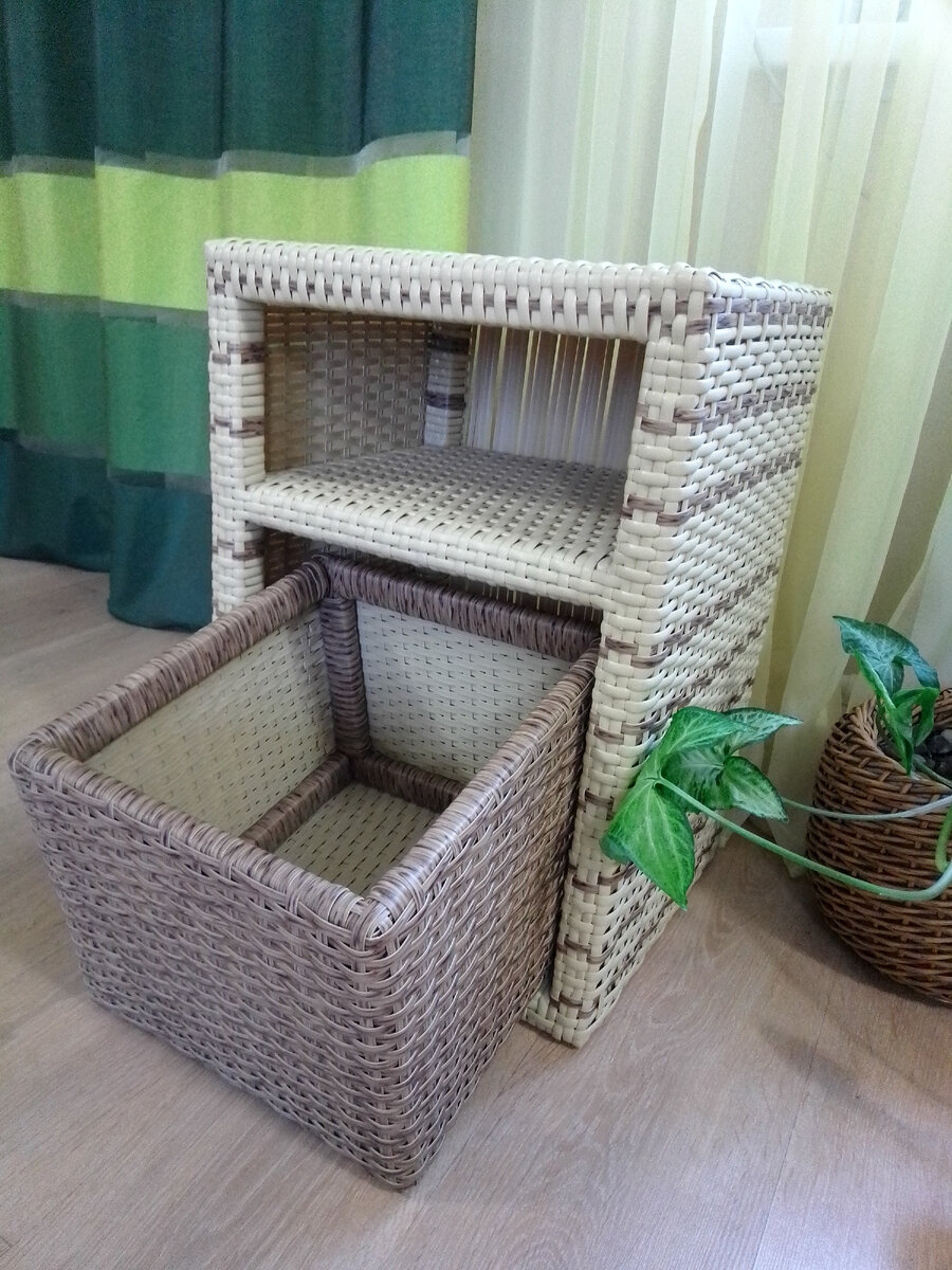 Тумба с ящиком изготовлена из деревянных брусков и полиротанга. размеры 59*40*35 Использовать в помещении, протирать влажной тряпкой. Можно заказать в другом цвете.