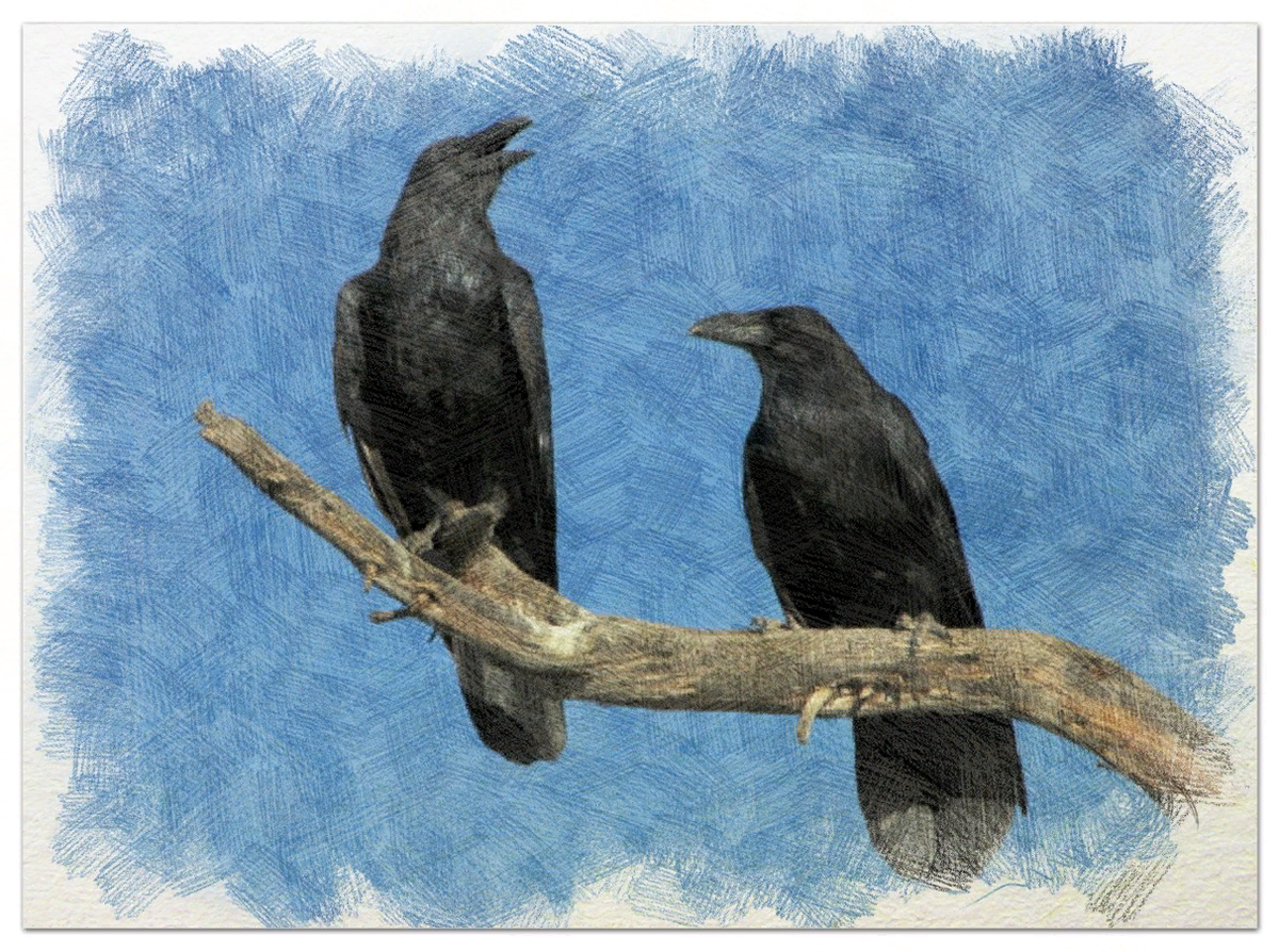 На соседнем дереве шумно каркает стая чёрных птиц.
