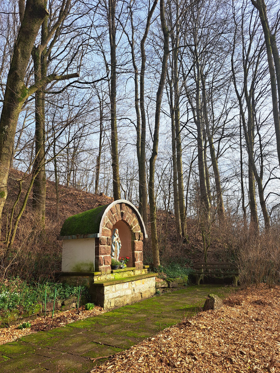 Историю этого грота я уже описывала, но, кто не видел комментарий повторюсь: Молодой человек восемнадцати лет выучился на кузнеца и мечтал им работать. Но никак не мог найти себе место. Ему приходилось очень тяжело работать на рудниках и он всё время молился Деве Марии, чтобы она помогла ему устроиться куда-нибудь кузнецом. И вскоре ему предложили место кузнеца в деревне Herbram. Он считал, что ему повезло, потому что молитвы его были услышаны. И в благодарность он своими руками сделал памятное место в честь Девы Марии (Mariengrot). Он очень хотел, чтобы у людей было место, куда они могли прийти и в тишине спокойно помолиться Деве Марии. Он до конца жизни прожил в Herbram. А местные жители до сих пор с любовью ухаживают за этим местом.