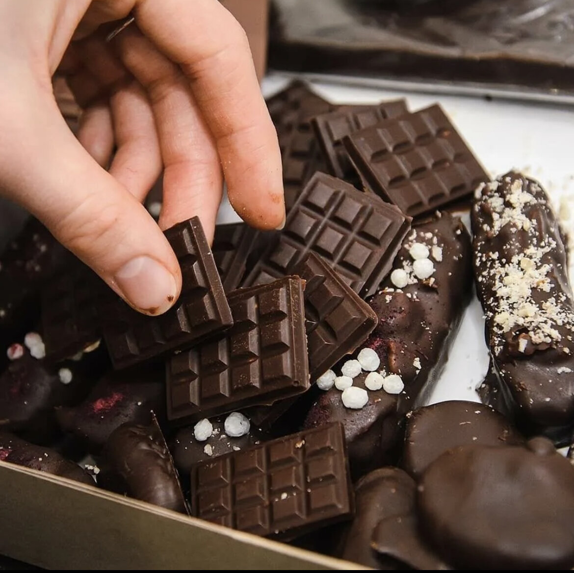 Для приготовления нам понадобятся: ● Какао — 100г ● Сливки или молоко — 50мл ● Сахарная пудра — 2 ст. ложки ● Сливочное масло — 50г ● По желанию можно добавить ваниль или ванильный сахар, корица, орехи, курага и изюм. 1.шаг На маленьком огне, подогреваем сливки, не доводя до кипения. Растворяем в них сахар и ваниль. 2.шаг Добавляем сливочное масло и корицу. Получившуюся смесь выливаем в какао-порошок небольшими порциями и тщательно вымешиваем.Не спешите сразу выливать всю жидкость, это может послужить образованию комочков. 3.шаг Слегка подогреваем на паровой бане или медленном огне. По желанию добавляем изюм и орех(добавив орехи, вы сделаете этот шоколад не только вкусным но и полезным). 4.шаг Распределяем по формам и отправляем остывать в холодильник. Приятного аппетита!