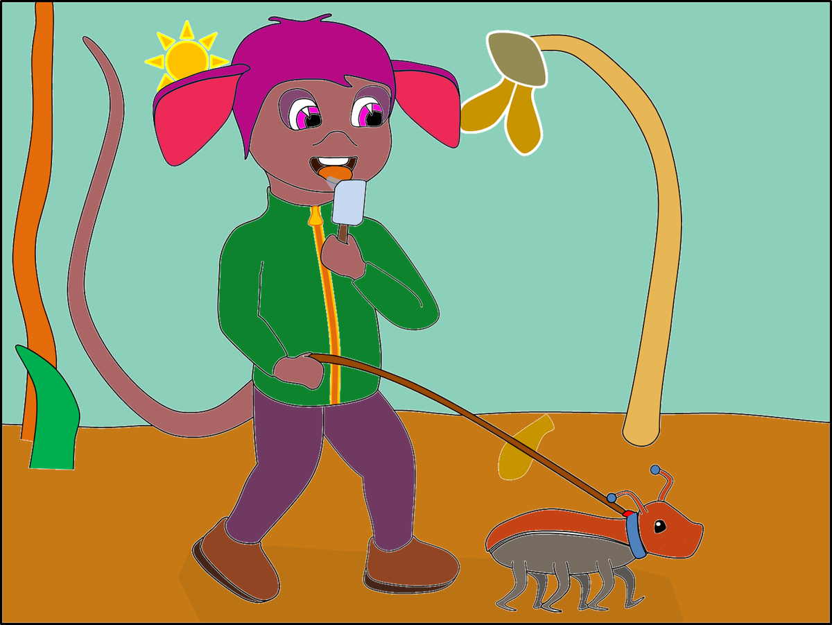 Я их специально рисую так, что бы они вызывали как можно большее умиление. Этого львёнка я взял из реальной фотографии (живот не пририсовывал, он таким и был), изменил цвет на голубой и приколлажил к собственному дивану. Это, конечно же, рисунок с заставки. Тут зверёк в плавательном (или нет?) костюмчике наелся арбузов, лопает мороженое и слутает музыку. И, судя по всему, на картинке довольно ветренно. На последней картинке я изображал процесс взросления и старения своего персонажа.