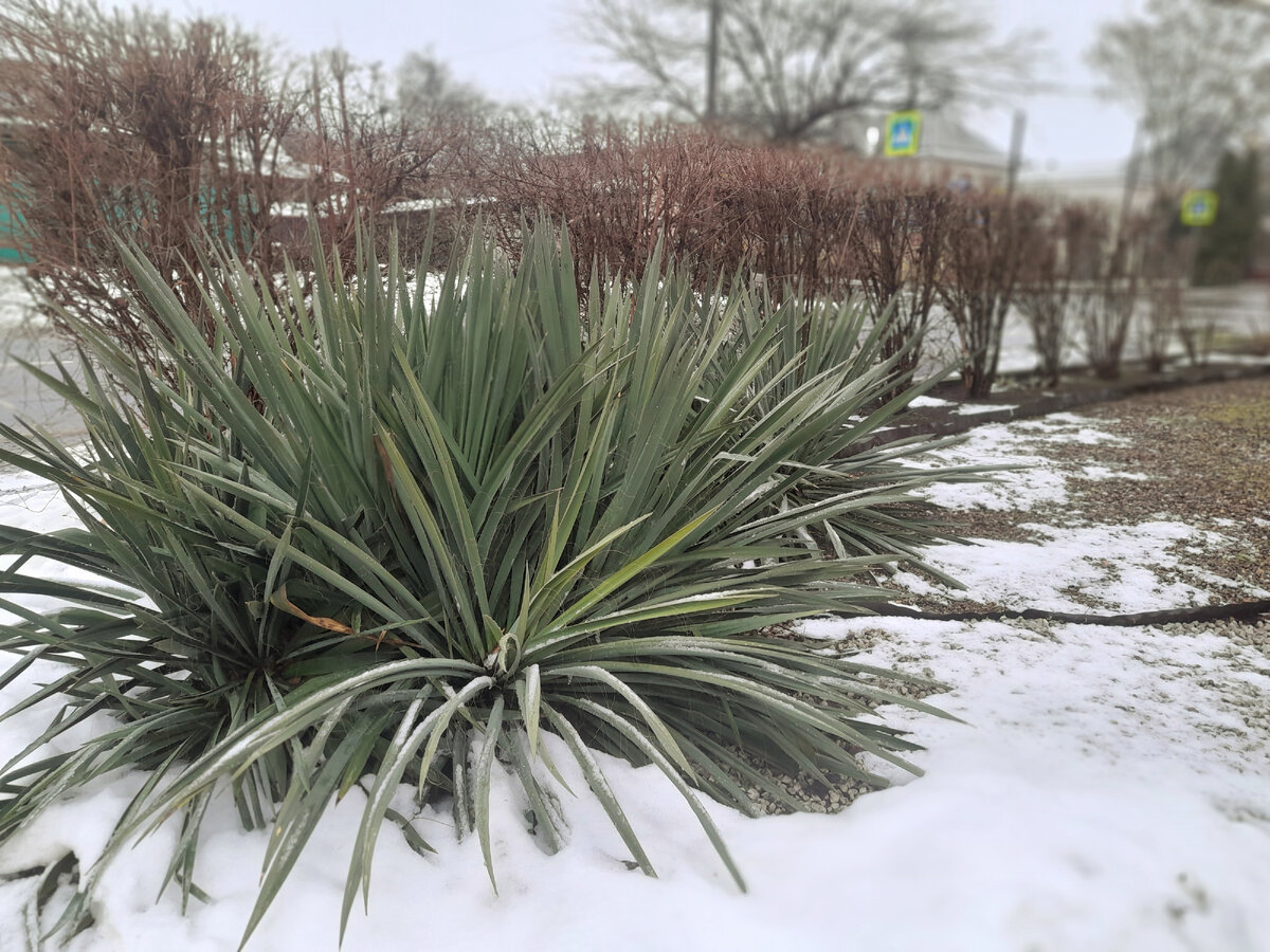 — Эта юкка мне весь мозг выела! Я весь январь по ночам просыпалась и ходила смотреть на градусник, а вдруг -15, а она у нас неукрытая стоит! Муж даже грозился выкопать ее, замучился с моей юккафобией. Но она молодец, стоит бодрая и это так удивительно — южное растение и выдерживает морозы, ледяной дождь и ветра!