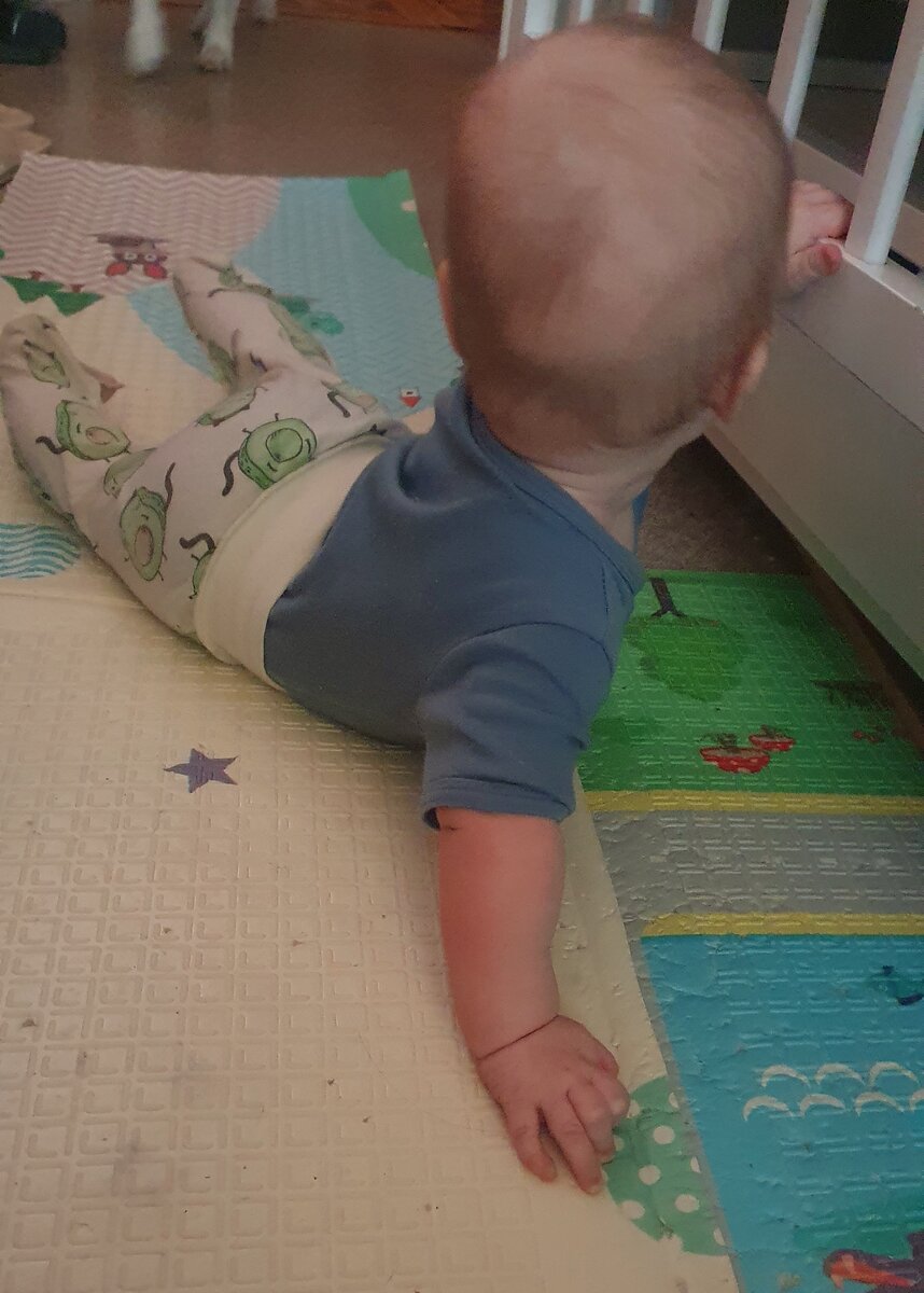 Ползали мы себе неспеша ползали в комнате на коврике. Но это было в основном вокруг своей оси, либо возле игрушек. И вот вчера пополз так активно, что уполз в коридор😄