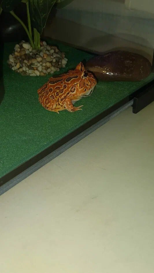 «Если ваша лягушка подавлена…» Услышали мы однажды из обучающего видео для владельцев амфибий и призадумались. Разве её разберёшь, лягушку? Вот собака – другое дело. Если собака прыгает, лает, виляет хвостом и ласкается, то сразу понятно, что перед тобой счастливый питомец. С лягушкой дело обстоит иначе. Лягушка сидит. Или лежит. Но для них это примерно одно и то же. В природе они малоподвижные, а в террариуме и подавно. Что такое счастливая лягушка? Мы проанализировали поведение нашего дорогого друга Чайковского, который живёт с нами уже 3 месяца и охотно разрешает себя изучать. У него есть большой дом, чрезвычайно большой, по сравнению с предыдущим местом обитания, с мягкой зелёной подстилкой, камнями, ванной и красивыми искусственными растениями, под которыми он любит прятаться. Когда аккуратно подлезть не получается, то Чайковский роняет их на себя и остаётся удовлетворённым – «и так сойдёт». Когда мы моем в комнате полы, то выпускаем его порезвиться. Он думает. Потом целенапра