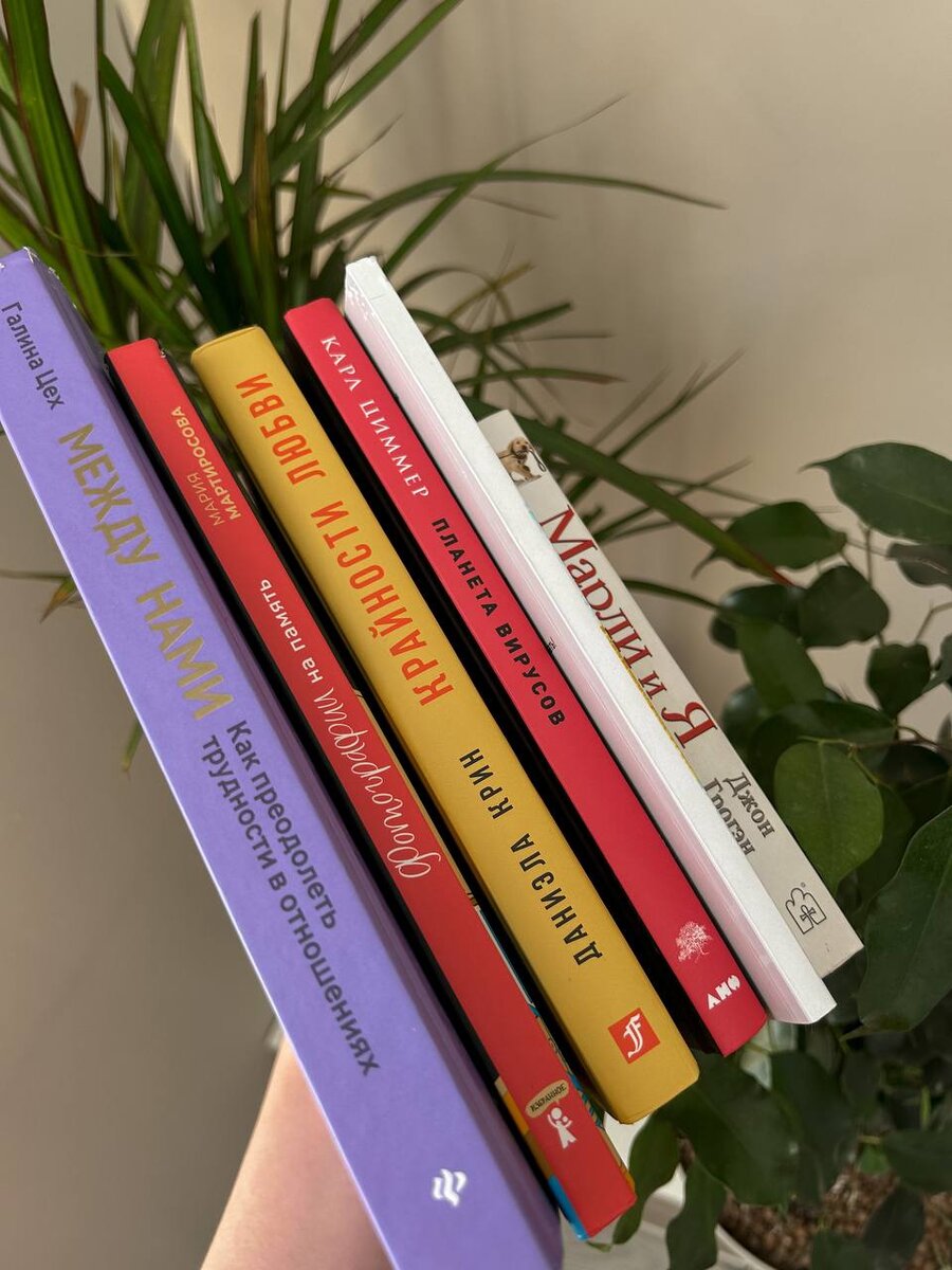 Вот и второй месяц года пролетел, а у меня готов список прочитанного за февраль. ⠀✔️6 книг, 1500 страниц ⠀Февраль был трудным в эмоциональном плане, поэтому не могу похвастаться большими книжными итогами. В основном, в книгах я хотела отвлечься, но мысли были о другом… Но были книги и лучшие, были книги полезные, были книги до слез. 📒 Детская литература * Мария Мартиросова «Фотографии на память» * Анна Анинибуд «Шишел-Мышел» ⠀📔 Современная зарубежная проза * Даниэла Крин «Крайности любви» * Джон Грогэн «Марли и я»⠀ 📘 Нон-фикшн * Карл Циммер «Планета вирусов» * Галина Цех «Между нами» ❤️ В сердечке ⠀«Между нами»-очень сильная книга, будет полезна для каждого, кто хочет крепкие и здоровые отношения.Огромное количество классных заданий, легкий язык. Скоро выпущу подробный отзыв. ⠀и ещё ⠀«Марли и я»- я думаю, все смотрели фильм, это один из моих любимых, один из самых трогательных и самых реалистичных. Да, ждать реальная жизнь собачника. Ну, как вы поняли, над книгой я смеялась и ры