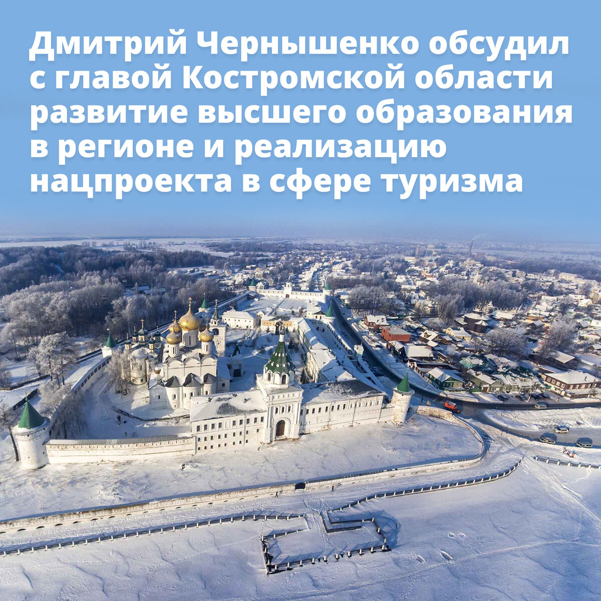 💬Основными темами обсуждения стали развитие высшего образования в регионе и реализация мер нацпроекта «Туризм и индустрия гостеприимства». 🎓Губернатор рассказал о планах развития Костромского государственного университета (КГУ). В 2022 году за счет средств федерального бюджета частично были отремонтированы учебные корпуса вуза. Сейчас на базе КГУ планируется создание научно-образовательного центра цифрового машиностроения, основными направлениями которого станут цифровые двойники управления производственными системами. ❗️Дмитрий Чернышенко поручил Минобрнауки изыскать средства для продолжения ремонта зданий КГУ и рекомендовал региону принять участие во втором отборе проекта «Передовые инженерные школы». Также на встрече губернатор рассказал о развитии туризма в Костромской области: 🎒в 2022 году регион посетили почти 1,1 млн гостей; 👛поступления в бюджет региона от туризма составили 477 млн рублей; 🔺объем платных туруслуг вырос на 30% и составил 2,1 млрд рублей; 🛣за 10 лет отре