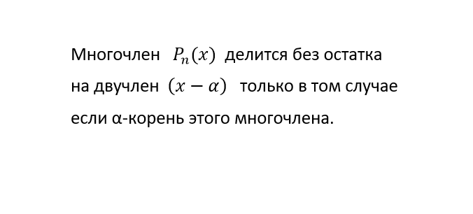 Все целые корни приведённого алгебраического уравнения с целыми коэффициентами являются делителями его свободного члена.