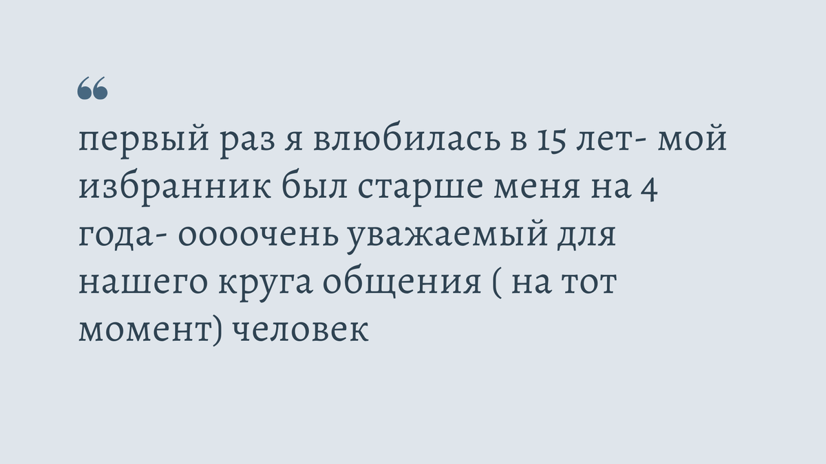 Начну так: первый раз я влюбилась в 15 лет- мой избранник был старше меня на 4 года- оооочень уважаемый для нашего круга общения ( на тот момент) человек- много юморил, пил, употреблял героин, несколько условок, поднимал на меня руку, когда только вздумается- в ответ я гуляла с другими, но от него не уходила!! Не любила, но и не уходила!!