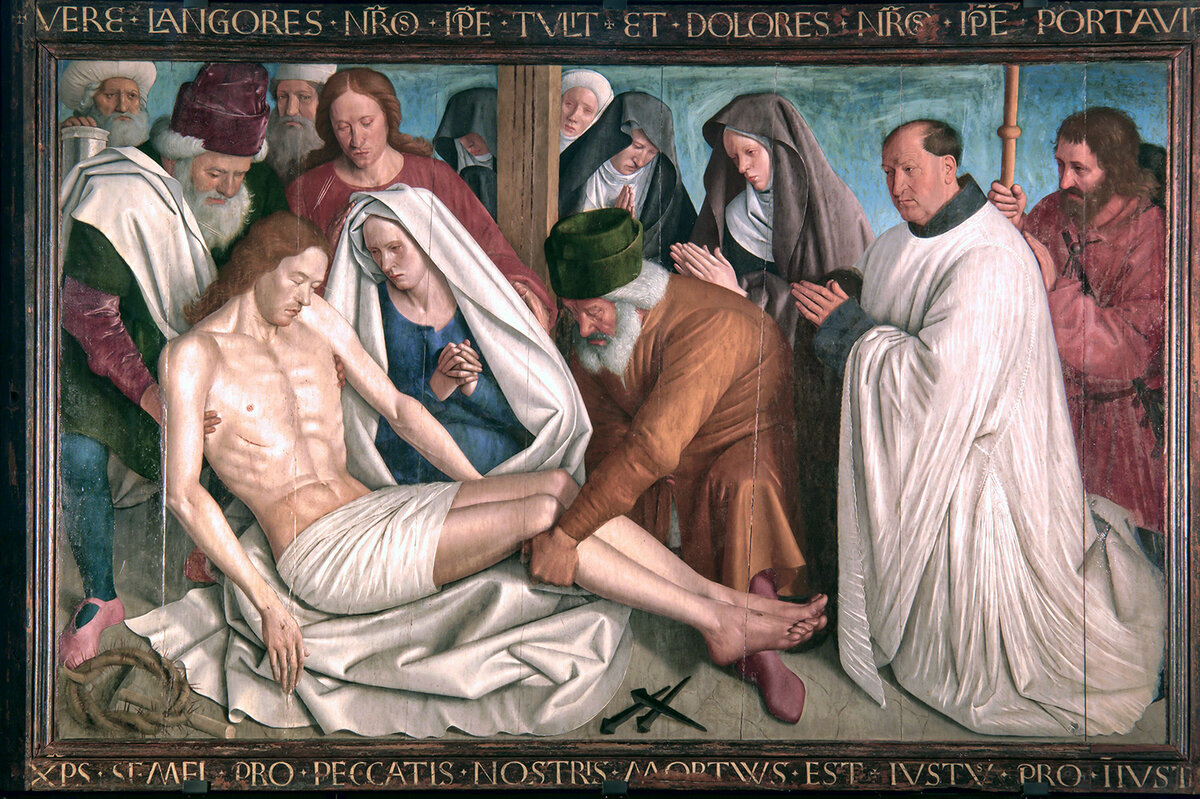 "Пьета де Нуан (Pietà de Nouans)" французского художника Жана Фуке (1420–1481) неизвестна широкой публике, во многом из-за своей труднодоступности. Её нельзя обнаружить случайно при посещении крупного музея в Антверпене или Берлине. Чтобы увидеть картину, нужно проехать по небольшим проселочным дорогам к церкви Noauns-les-Fontaines в маленькой деревушке с населением менее 800 человек на окраине Турена. Фуке выбрал для этого полотна очень оригинальную иконографию. Изображенная сцена находится на полпути между Пьетой и Снятием с креста. На Пьете обычно изображена Мадонна, держащая на коленях тело своего мертвого сына — эпизод, который в хронологическом порядке находится между снятием Креста и погребением. Так вот, здесь не Дева Мария, а Никодим и Иосиф Аримафейские держат тело Христово. Они осторожно кладут его на колени матери. Единственным другим известным примером этой редкой иконографии является «Снятие с креста» Хьюго ван дер Гуса, фламандского художника, современника Фуке. Но р