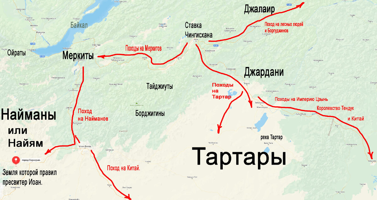 Чингисхан много раз со своей армией ходил в походы то против одних, то против других. Армии по численности у него были большие. Чингисхан предполагал, что его империя не развалится и в дальнейшем на тех местах, где будет ходить его армия проложат автомобильные магистрали:))) В походах Чингисхан выстраивал шеренгу воинов так, что бы в будущем не надо было нанимать геодезистов и делать разметку дорог. А нагруженные кони, утрамбовывая грунт, заменили собой тяжёлые строительные машины. Чингисхан не сразу пошёл на запад и юг... Сначала он создал дорожную инфраструктуру, по которой проще было бы доставлять на фронт боеприпасы, тащить катапульты и провиант:))) Читая выше строки то может показаться это смешным, и автор статьи перегнул палку с использованием альтернативной истории. Но если проанализировать походы Чингисхана, и сравнить их с маршрутами по которым проложены современные автотрассы, то возможно так и было. По тем местам, где водил свою армию Чингисхан видны крупные да и не оче