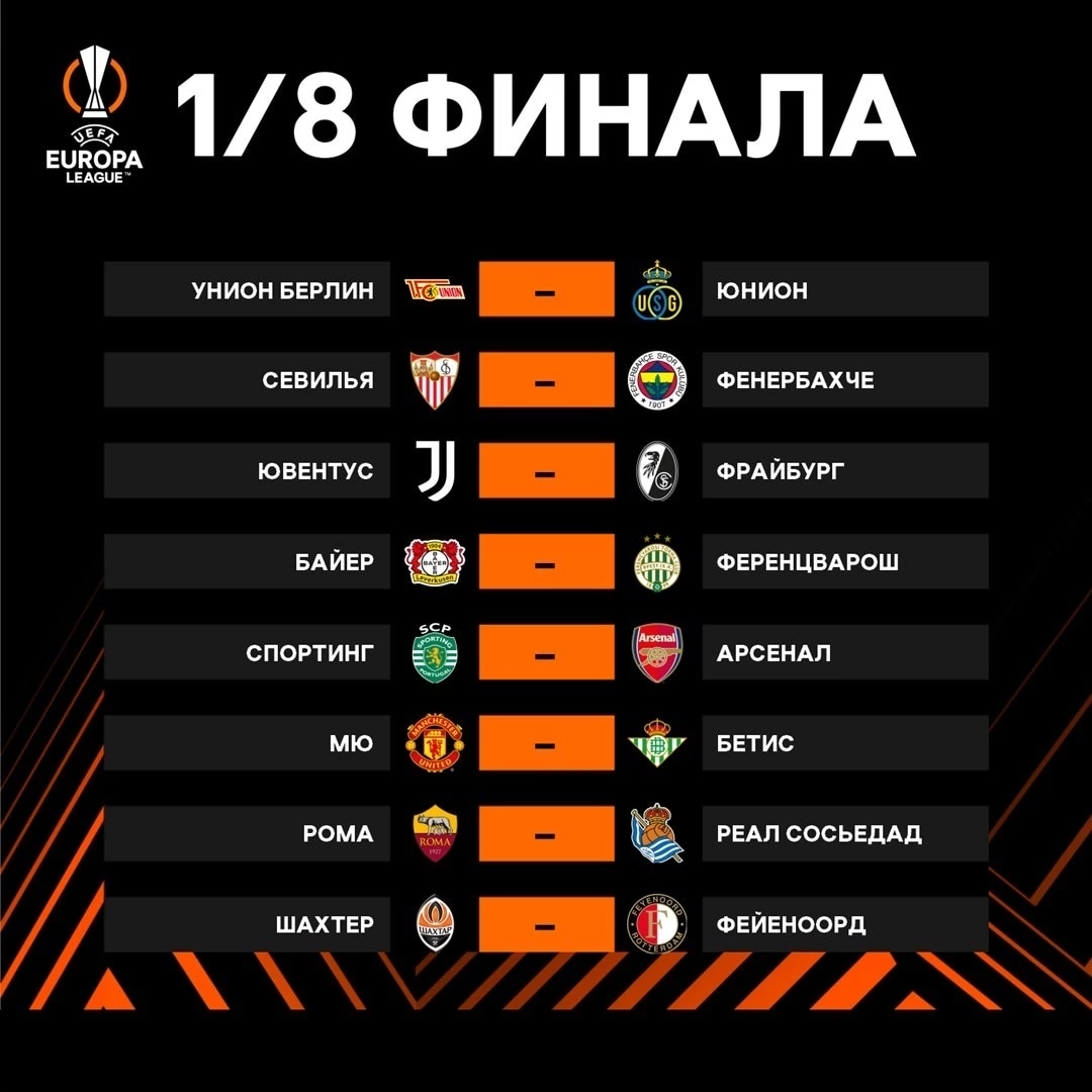 Стали известны все пары 1/8 Лиги Европы