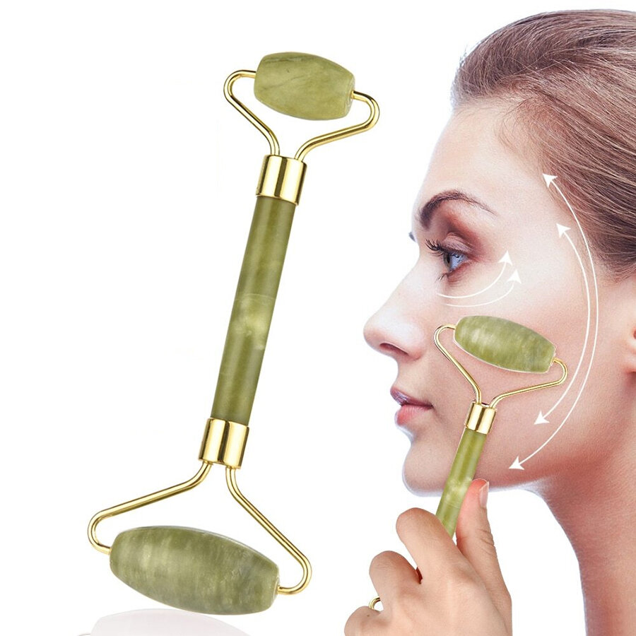 Нефрит снимает стресс, успокаивает кожу, возвращает коже упругость. Ещё в древнем Китае нефриту приписывали чудодейственные средства. Современные литотерапевты подтверждают, что это не миф и нефрит действительно способен омолаживать и лечить кожу. Нефритовый массажёр уменьшает отёки, легко справляется с тёмными кругами под глазами, усиливает кровообращение, помогает уходовым средствам проникать глубоко в кожу, в охлаждённом виде освежает цвет лица. Как правильно использовать нефритовый массажер? Очистите кожу лица, нанесите тонер и уходовое средство, идеально если это будет сыворотка. У нефритового (кварцевого, хрустального) ролика две головки большая и маленькая, каждая для своей зоны: Большая насадка: