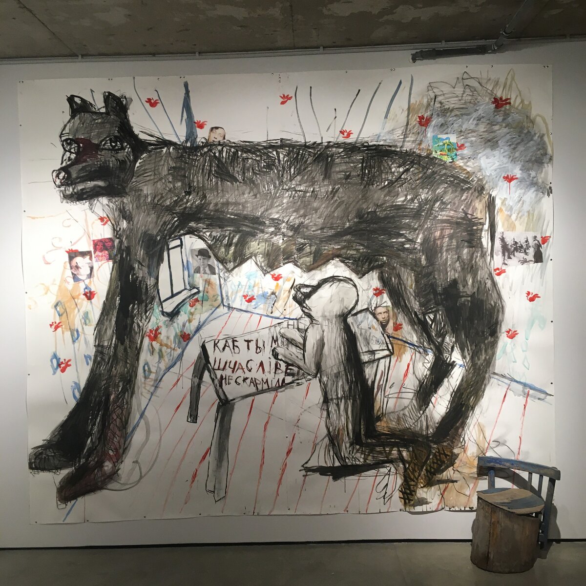 Это могут быть просто - волк, пес и стена. И всё. Откуда и зачем они в работах художника из Беларуси
