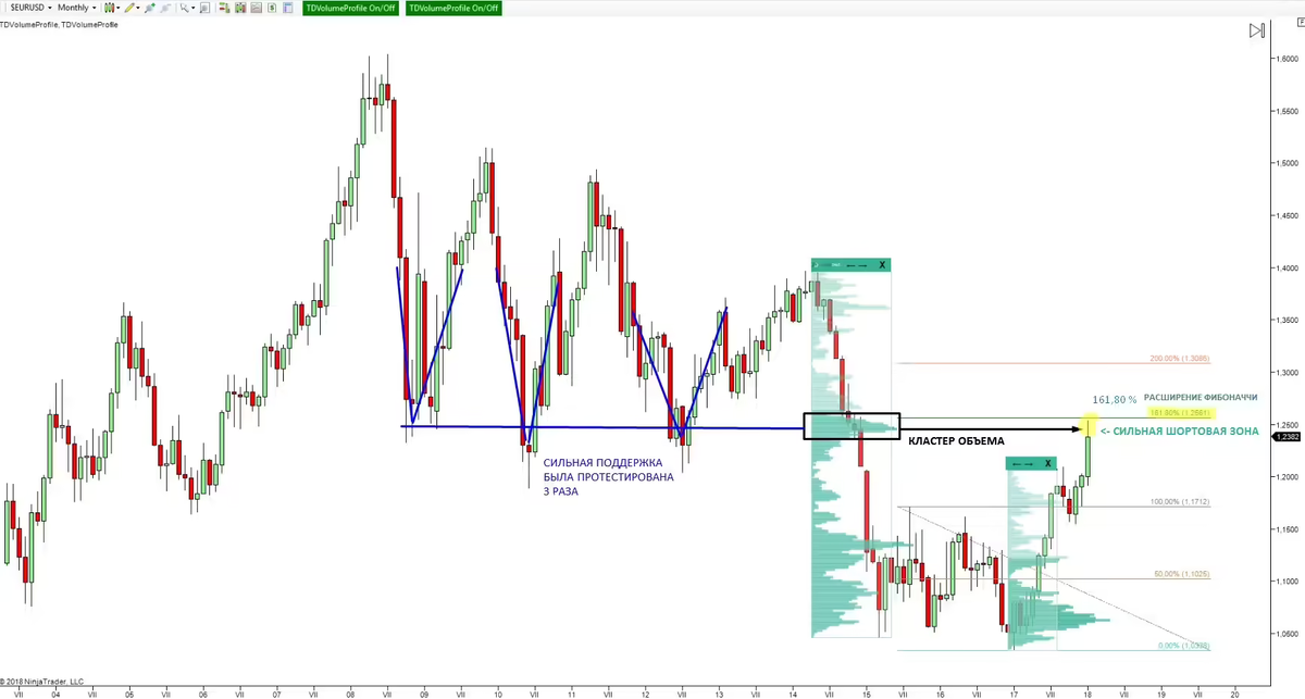 Одна из лучших особенностей индикатора Volume Profile (Профиль Объема) – его универсальность. Вы можете использовать его на разных таймфреймах и, конечно же, на всех возможных торговых инструментах. В этой статье я расскажу, как использовать профиль объемов для поиска и планирования сделок, которые по сути являются долгосрочными инвестициями, а не обычными внутридневными или свинговыми сделками. Чтобы дать вам некоторое представление о том, что я имею в виду, стоп-лоссы для таких сделок составляют сотни пунктов, а тейк-профит – более 1000! На определение и срабатывание этих очень долгосрочных точек входа уходят месяцы или даже годы. После входа в сделку вы можете находиться в ней еще несколько месяцев. Безумие, правда? Ну, это звучит безумно, только если смотреть на это с точки зрения внутридневного или свинг-трейдера. Представьте себя, например, фондовым инвестором. Этот вид торговли гораздо ближе к такому стилю, чем наши типичные дневные или свинговые торговые точки вхо