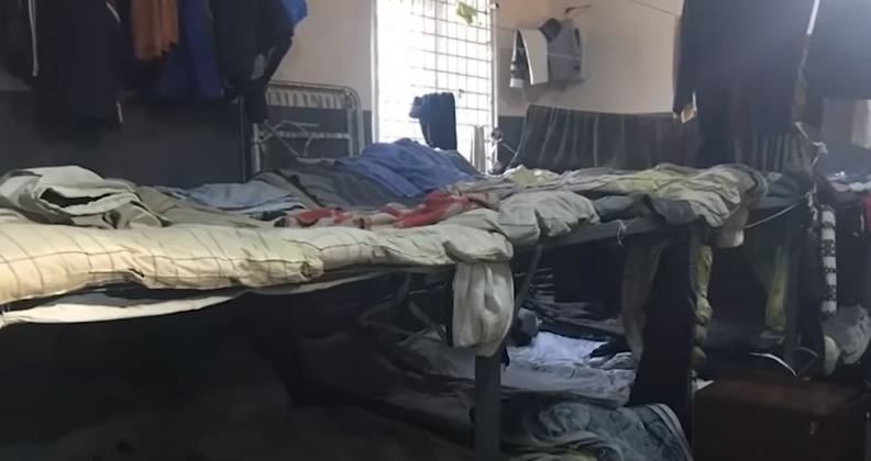 В СИЗО-6 УФСИН России по Санкт-Петербургу и Ленинградской области есть ОК, в которых содержится свыше 100 человек разом. Да, в одном помещении, как в казарме или очень большом хостеле. Койки в таком хостеле изготовлены из железа. Обычно это сваренная из запаянной трубы или угольника рама, с наваренными на неё полосами из металла. Иногда ячейки настолько велики, что в них проваливается матрас (если он вообще есть). Железные кровати ("шконки" или "шконари") крайне неудобны, как и всё в тюрьме. Это часть системы, заточенной на то, чтобы человек осознавал себя отбросом общества. Кровати грубо приварены к штырям, вбитым в стены и пол, иногда сварены ещё и между собой. Шконки составляют нечто вроде скелета общей камеры. Ещё эти, с позволения сказать, кровати - один из поводов хотеть уехать "на зону", ведь в колониях, как правило, используются кровати с матрасом-сеткой - вроде армейских. Спать на них гораздо удобнее. Кстати, матрас - одна из основных ценностей в камере. За хороший матрас сотрудники учреждения и хозотрядники берут взятки. Опытные сидельцы запросто отдают за двойной матрас хорошие кроссовки или кожаную куртку.