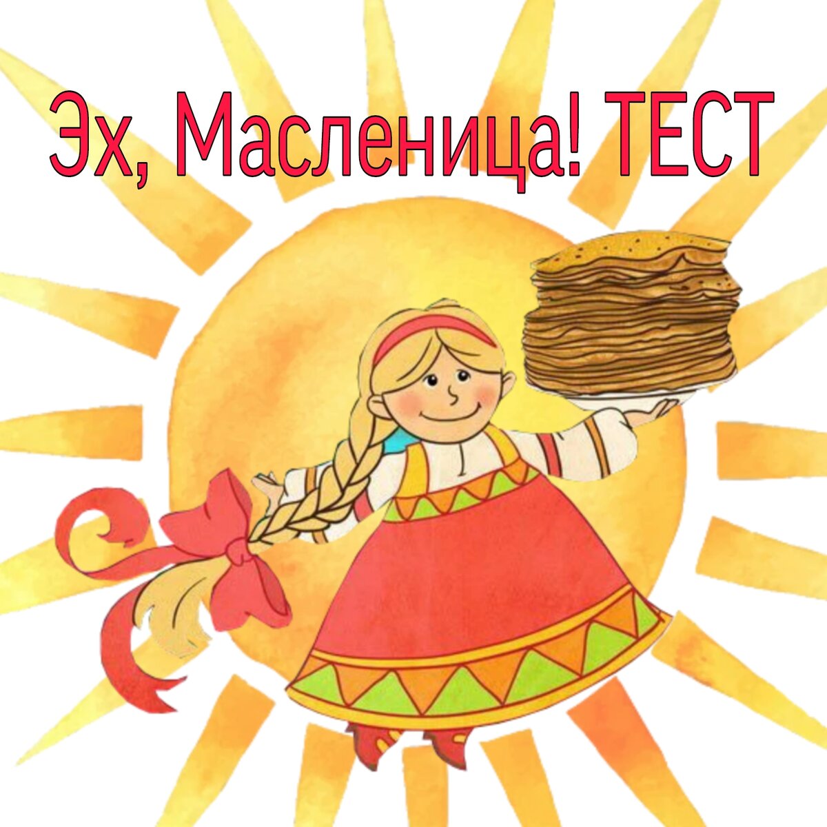 А насколько хорошо именно вы знаете о Масленицу? Мы подготовили небольшой тест, ответы будут в комментариях, играйте честно! Что символизирует Масленица? a. Приход весны и начало нового года b. Окончание зимы и наступление весны c. Переход от зимнего к летнему образу жизни d. Все вышеперечисленное Какое мероприятие является традиционным для Масленицы? a. Гонки на лыжах b. Соревнование в катании на коньках c. Гонки на блинах d. Соревнование в прыжках в мешке Сколько длится Масленичная неделя? a. 7 дней b. 8 дней c. 9 дней d. 10 дней Какое животное является традиционным символом Масленицы? a. Кот b. Журавль c. Медведь d. Курица Как называется последний день Масленицы? a. Встреча б. Проводы c. Расставание d. Прощание Какой праздник непосредственно следует за Масленицей? a. Пасха b. День защитника Отечества c. Новый год d. День космонавтики Что традиционно пекут на Масленицу? a. Блины b. Пироги c. Печенье d. Хлеб Как называется персонаж, который символизир
