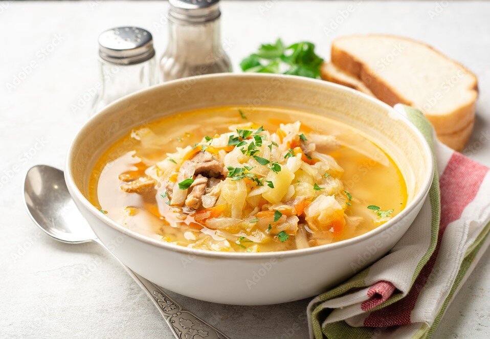 Суп щи - это классическое русское блюдо, которое приготавливается из мяса, капусты, картофеля, моркови, лука и других овощей. Вот простой рецепт, как приготовить вкусный суп щи: Ингредиенты: 500 гр говядины (лучше выбрать на косточке) 1 средний кочан капусты 3-4 картофелины 2 моркови 1 большой лук 2-3 зубчика чеснока 2-3 литра воды или бульона 2-3 лавровых листа 2-3 гвоздики 1 столовая ложка растительного масла соль и перец по вкусу зелень (укроп, петрушка) для подачи Приготовление: 1. Нарежьте говядину на кусочки среднего размера. В большой кастрюле на среднем огне нагрейте масло и обжарьте говядину до золотистого цвета. 2. Добавьте нарезанный лук и чеснок, обжаривайте, пока лук не станет прозрачным. 3. Нарежьте картофель кубиками и натрите морковь на крупной терке. 4. Добавьте картофель и морковь в кастрюлю, продолжайте обжаривать вместе с мясом 5-7 минут. 5. Нарежьте капусту на средние кусочки и добавьте в кастрюлю. Добавьте лавровые листы, гвоздику и воду (или бульон). 6. Довед