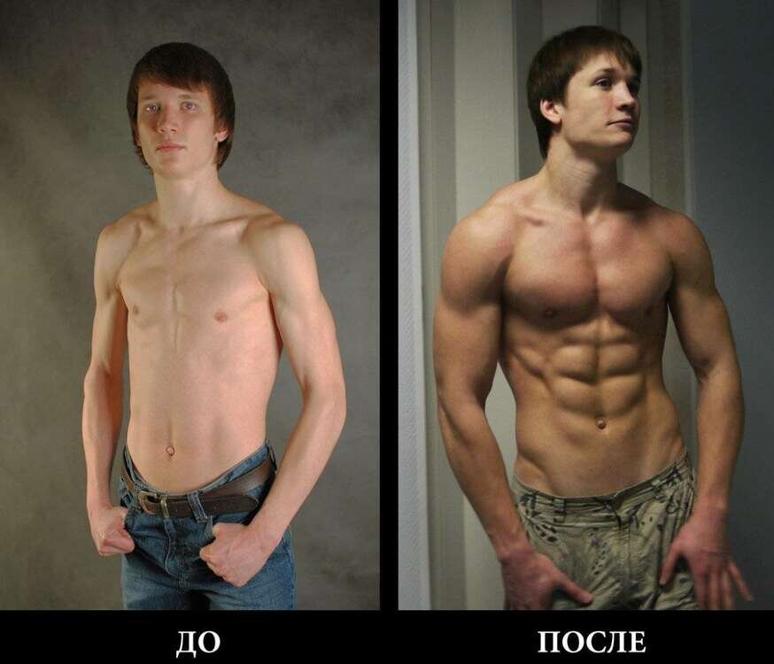 Прежде всего необходимо позаботиться, чтобы организм получал достаточное количество аминокислот — веществ, из которых синтезируются мышечные волокна. Если насытить рацион протеинами и регулярно выполнять силовые упражнения, вес тела будет увеличиваться за счет мышечной, а не жировой массы. За день нужно съедать не меньше 200 граммов мяса. Лучше, если это будут нежирные сорта: телятина, кролик, птица. Много белка содержится в молоке, яйцах, рыбе, морепродуктах и плодах бобовых растений (горох, фасоль).