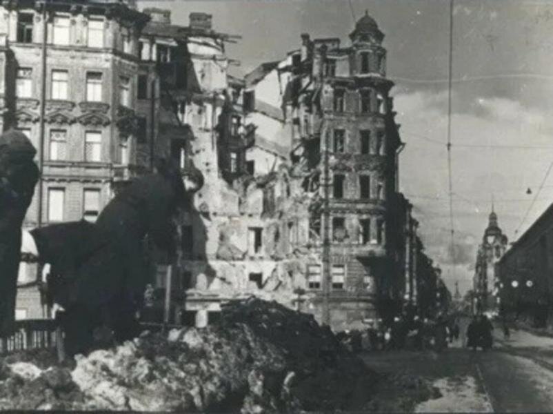 Льву Морозову было всего восемь лет, когда началась Великая Отечественная война. Когда началась блокада, он жил маленьким ребенком на проспекте Сихорса (Малый проспект П.С.) на Петроградской стороне. Петроградская сторона после бомбардировки. Фото из открытых документов. Петроградка - моя родина, я там родился. Лев и его брат Юрий пережили блокаду со всей любовью матери. Когда началась война, маму Льва Сергеевича отправили работать в окопы под Ленинградом. Там женщины рыли окопы, а когда работа была закончена, они успевали принести продукты для своих детей. Поэтому, когда началась блокада, дома был небольшой запас еды. Тогда матери были совершенно измотаны, ведь они делили дневной запас еды со своими сыновьями. Я плачу, вспоминая сейчас: моя мама медленно умирала, когда я дала ей 125 граммов. Однако семье удалось выжить. Позже Лев Морозов, его брат Юрий и их мать были забраны Красной Армией и эвакуированы через Радгу. Это было в марте 1942 года. Семья переждала блокаду и войну в Перми,