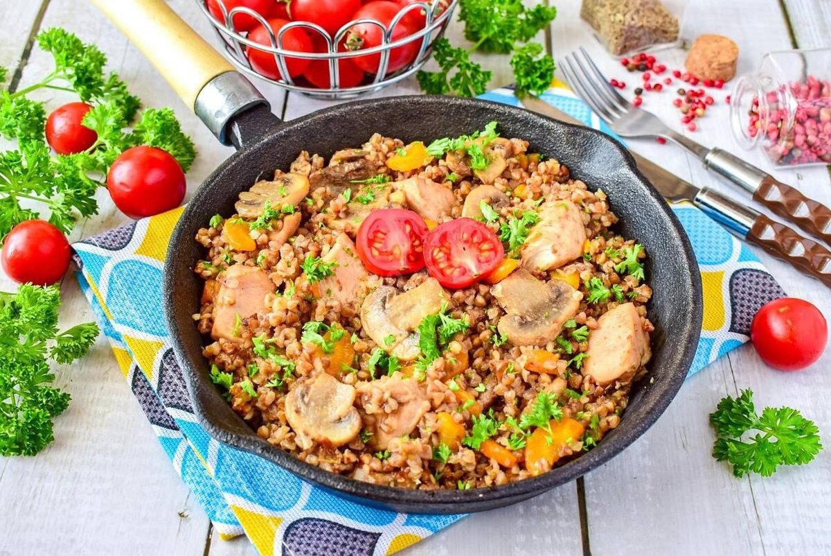 📖 Ингредиенты: - Гречка - 150 г. - Грибы - 200 г. - Куриное филе - 150 г. - Морковь - 1 шт. - Лук - 1 шт. - Растительное масло - ст. л. - Соль, перец - по вкусу 🧑🏻🍳 Приготовление: 1. Лук мелко нарезать, морковь натереть на крупной терке, грибы нарезать пластинами, а куриное филе небольшими кусочками. 2. В разогретую сковороду или казанчик добавить столовую ложку масла. После того, как масло нагреется, добавить лук и обжарить несколько минут, периодически помешивая. К луку добавить морковь и обжарить еще пару минут. Затем добавить грибы и жарить, пока с грибов не испарится вся жидкость. После добавить куриное филе, слегка обжарить в течении двух-трех минут. 3. Гречку промыть и добавить к овощам. Залить гречку водой так, чтоб она ее покрывала примерно на 5 мм, посолить по вкусу. Варить до готовности.