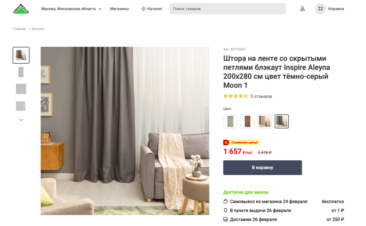Пример такой шторы с сайта магазина «Леруа Мерлен»: