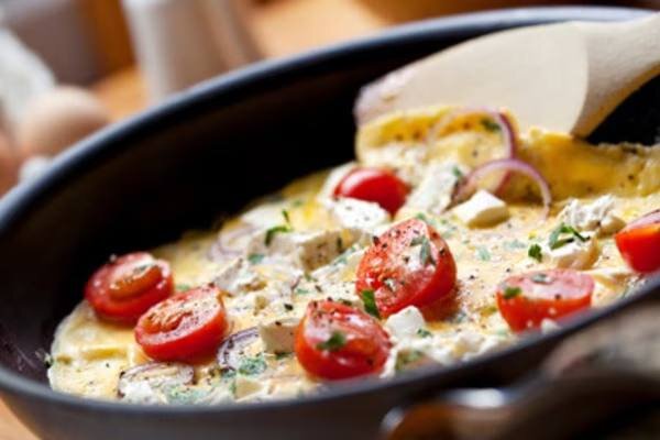 📖 Ингредиенты: - Яйцо - 3 шт. - Вода - 2 ст. л. - Черри - 4 шт. - Сливочное масло - 20 г. - Фета - 70 г. - Лук красный - по вкусу - Соль, перец - по вкусу 🧑🏻🍳 Приготовление: 1. В сковороде разогреть сливочное масло, добавить нарезанные кубиками помидоры или пюре из помидоров. Тушить 5-7 минут, до тех пор пока масса не загустеет. 2. Яйца взбить вилкой вместе с водой. Вылить яйца на сковороду к помидорам и на среднем огне дождаться пока они схватятся. 3. Посыпать луком, покрошить сверху фету и подержать на огне еще минуту.