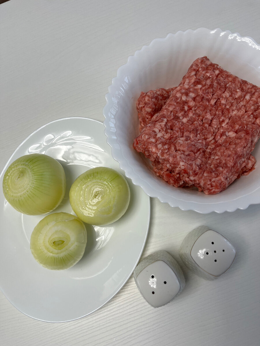 В фарш добавляем мелко нарезаный лук, сол и перец.
