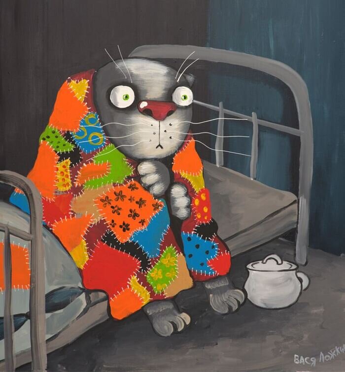 В ужасе, подпрыгиваю. Не пикнув, чтобы не выдать свое местонахождение, резко откидываю одеяло, наушники, вымышленного кота и несусь на кухню. Там тоже спать можно. Сердце колотится как у зайчонка. Минут двадцать ворочаюсь на сложенном диване, я ж не мои темпераментные соседи, чтобы ночью людям по голове мебель двигать. Поглядываю в двери, не идет ли кот-убийца. Засыпаю.