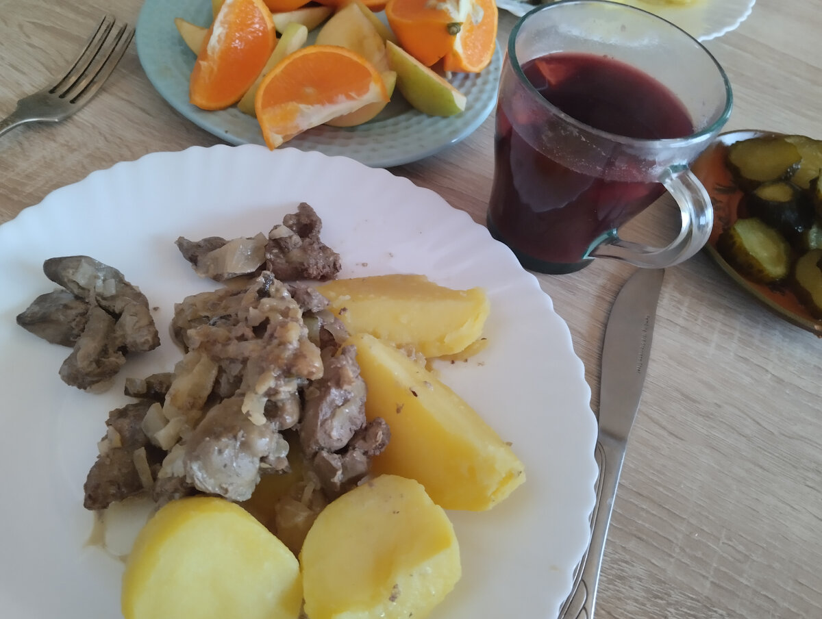 Ужин 24 февраля. Под глинтвейн потушила куриную печень с грибами в сметане