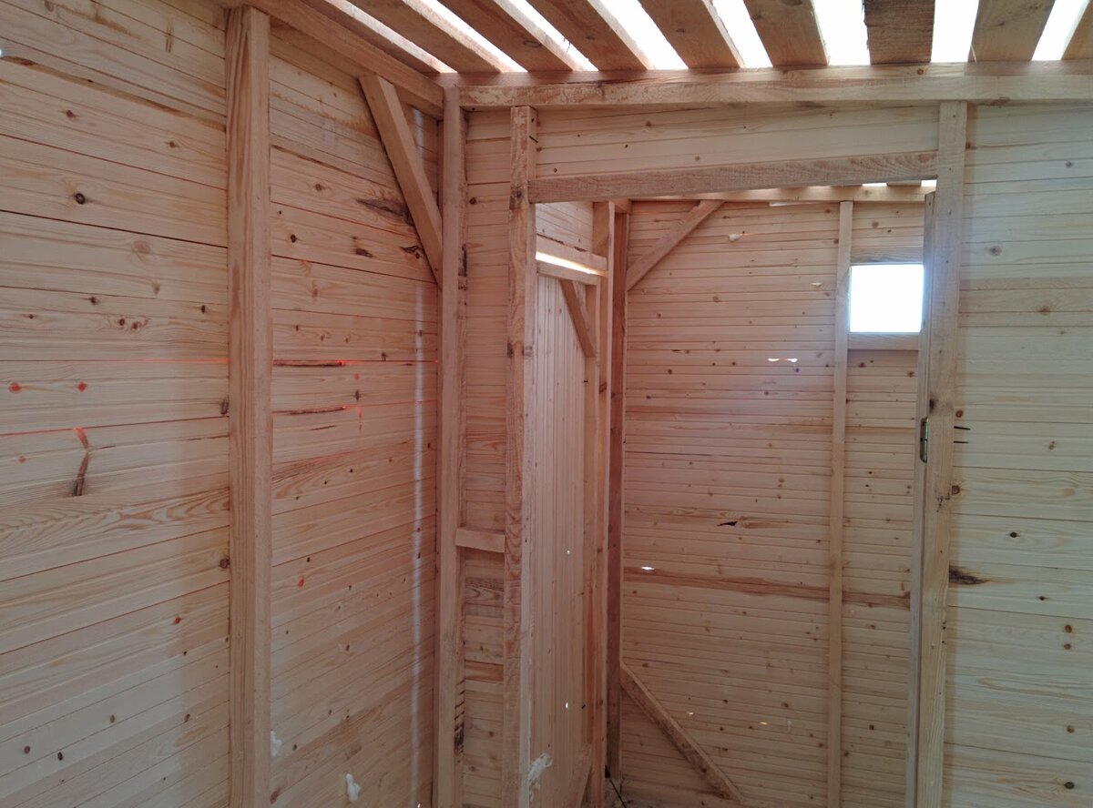Монтаж пароизоляции в бытовке выполнен, приступаю к внутренней обшивке. Укосин в каркасе нет. Изначально горе-производитель поставил позорные бессмысленные уголки, которые я снял сразу же, так как от них пользы ровно ноль, а мешались бы при утеплении они сильно: