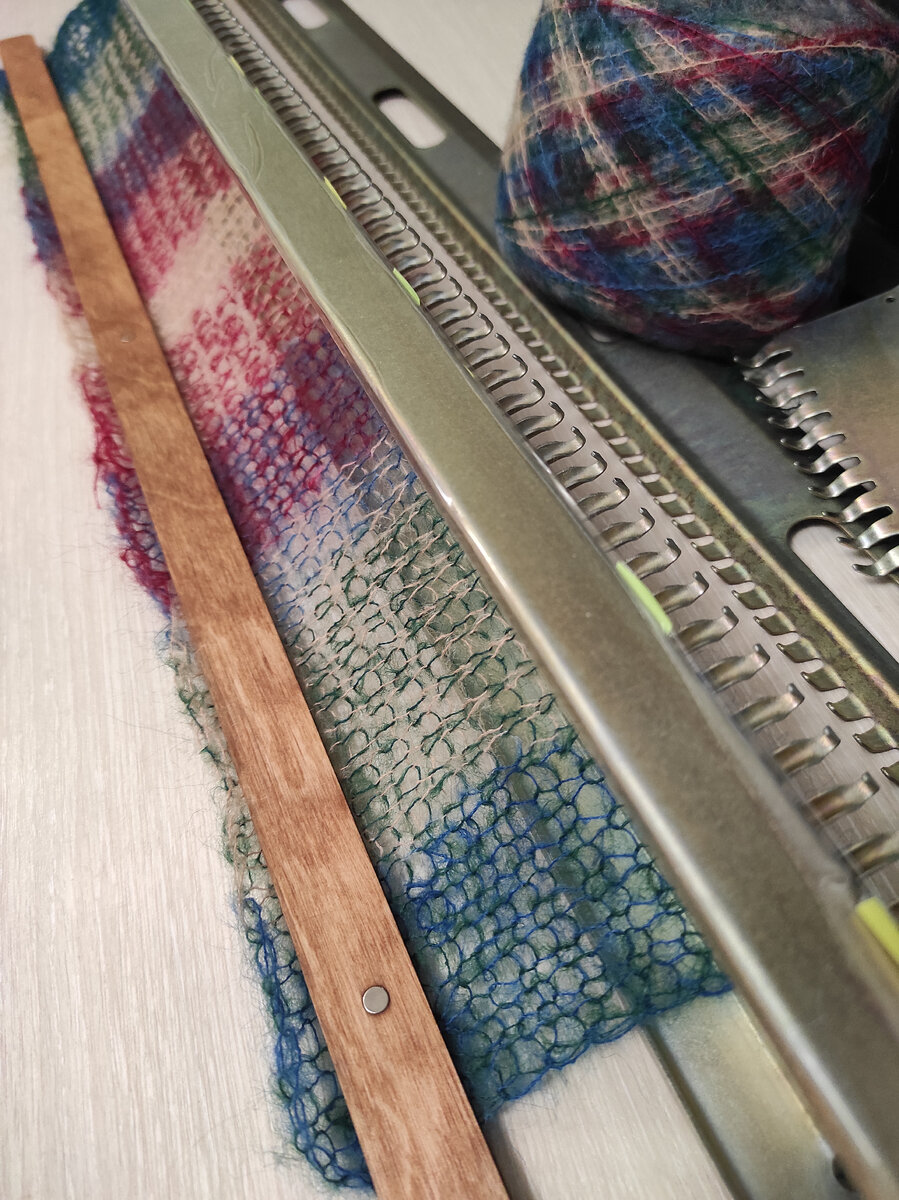 Зацепила эта техника вязания меня.Знать не знала о ней,пока случайно узор себя в полотне не показал.Три небольших моточка- остатка купила на пробу,а оно вон как вышло! Второй моток уже с толком с расстановкой в дело пустила. Пока тьфу-тьфу-тьфу всё идёт по плану .
