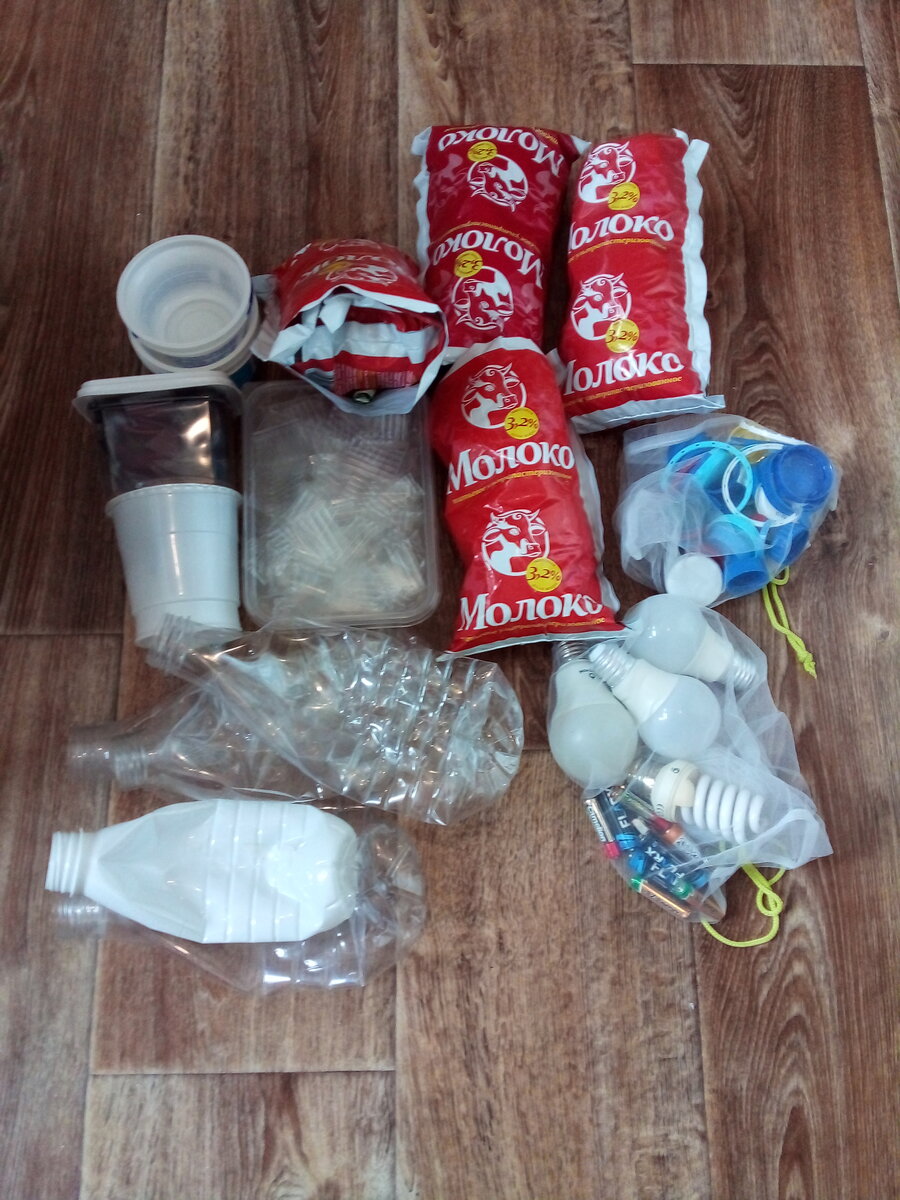 Год назад я впервые попала на акцию раздельного сбора отходов, которую каждый месяц организуют волонтеры. Ради интереса попробовала не выбрасывать и разделять пластик и была удивлена, сколько его незаметно набирается. Кстати, сначала я не понимала и не принимала эту идею, но в итоге это оказалось совсем не сложно. Около полугода просуществовала сортировка от Леруа Мерлен - недалеко от меня. Но она закрылась... По разным причинам на акцию рсо я не попадала и в итоге сегодня сдала накопленное за 5 месяцев. Все чистое, разделено по фракциям, компактно сложено. Что в итоге я сдала: - бутылки от молока 1pet - мягкий пластик с маркировками 4 и 5 - пакеты от молока, макаронных изделий, сладостей и прочего - коробочки от сметаны, творога с маркировкой 5 - крышечки и кольца от бутылок (маркировка 2) - использованные батарейки. Лампочки увезла обратно, их временно не принимают. Еще мы копим макулатуру, но сдаем ее рядом с домом - либо в специальный контейнер, либо на металлобазу за символическу