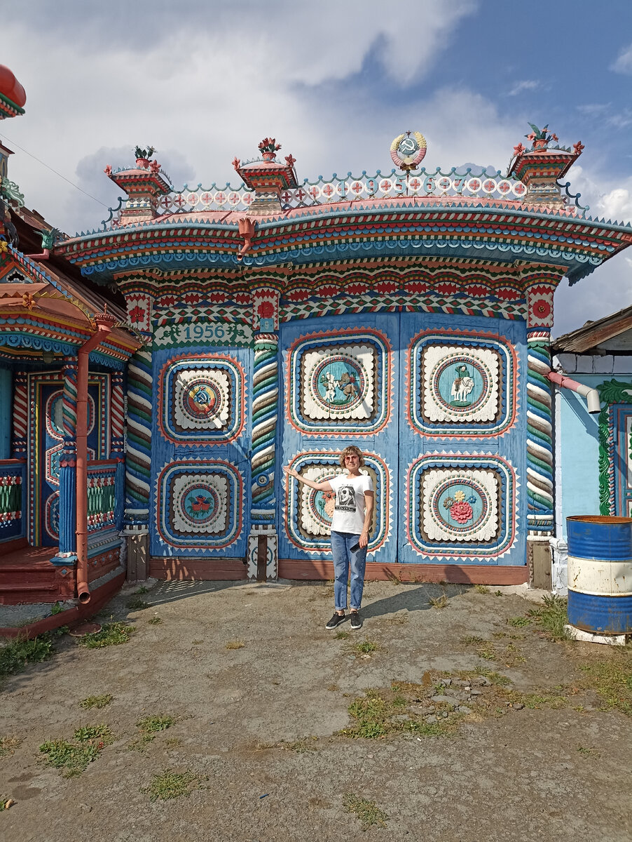 Многие на Урале знают про знаменитый дом художника по металлу, кузнеца Сергея Ивановича Кириллова. В 1999 году этот дом победил в конкурсе Деревянное зодчество России. Я читал и смотрел ролики об этом знаменитом доме, а когда мы поехали на Урал, то заехали в посёлок Кунара, чтобы полюбоваться этим произведением искусства. Создавал художник своë произведение 13 лет и посвятил 50-летию Великой Октябрьской социалистической революции. Вот как простые люди ценили свою страну и любили её. К сожалению, этой страны уже нет, но зато остались памятники советского периода, одним из которых и является Дом кузнеца Кириллова. Впрочем, хватит слов, любуйтесь)