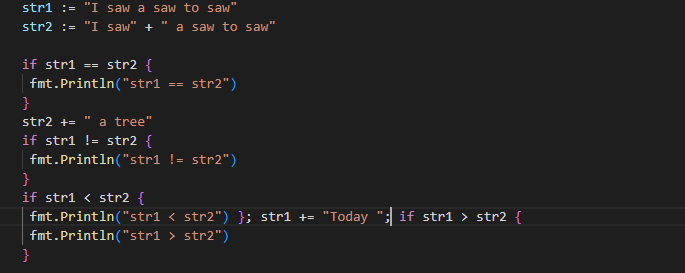 Как разработчикам, нам часто нужно сравнивать две строки, и Go поддерживает все распространенные операторы сравнения, включая == , != , < , > , <= и >= . Сравнение выполняется побайтно и следует естественному лексическому порядку в процессе сравнения. Вот краткий пример того, как сравнить две строки в Go: