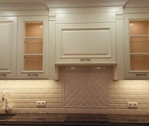 Самая недорогая-это ламинированная, она же и не убиваемая, в уходе проста как и столешница). Стендовые панели как правило, устанавливаются на столешницу и заводятся за шкафы, но и тут можно не заводить. Самим приобрести жидкие гвозди для ребят установщиков, это все обсуждается с менеджером на момент оформления заказа(не все менеджеры об этом знают). Тут ничего нерешаемого нет!