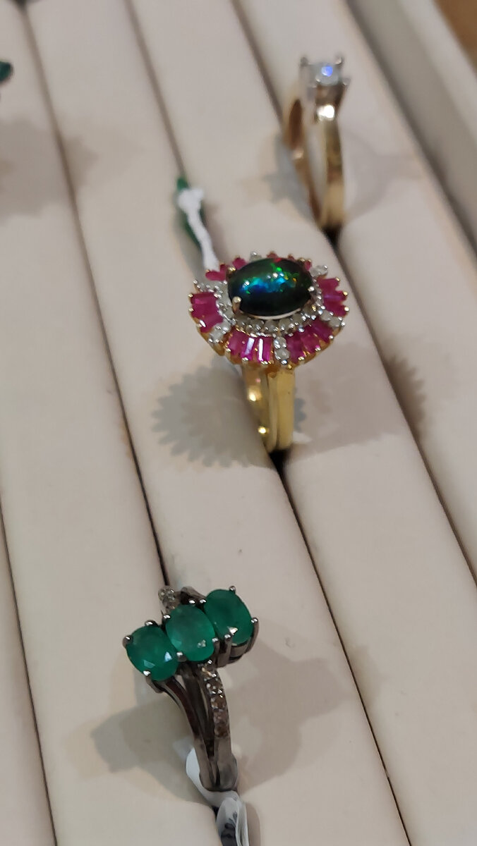 Всем хороших выходных и приятного отдыха! А чтобы сделать его для вас ещё приятнее, публикуем сразу несколько потрясающих украшений с драгоценными камнями. Сразу оговорюсь, что все представленные в этой публикации украшения выполнены из стерлингового серебра 925 пробы. Все камни только натуральные. А небольшие сверкающие искорки в обрамлении - это натуральные бриллианты. Например, в этих серьгах весом 9,24 грамма вес чистых и звонких изумрудов составляет 3,02 карата, а вес бриллиантов 0,82 карата. Этот потрясающий перстень с чёрным опалом из Эфиопии также выполнен из серебра, но имеет надежное золотое покрытие. Посмотрите как великолепна игра опала! И как гармонично дополняют его красоту окружающие лучики из натуральных рубинов и бриллиантов! Разве они не прекрасны? Вес опала в кольце 2,01 карата. Вес рубинов 1,62 карата. И 0.45 карат - это вес бриллиантов, обрамляющих опал и рубины. Чтобы не утомить вас своими рассказами, завершаю эту публикацию вот этими серьгами, в ко