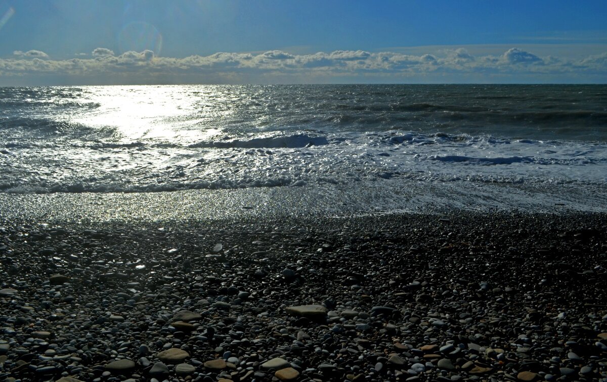 Несколько дней в унылой Кудепсте в январе. Микрорайон как-бы отрезан от сочинских центров развлечений. Скучно и тоскливо, если не принимать всенародный адаптоген. Но я нашел выход: ходить на море и слушать его шум (без приема адаптогена). Цвет настроения оказался синий