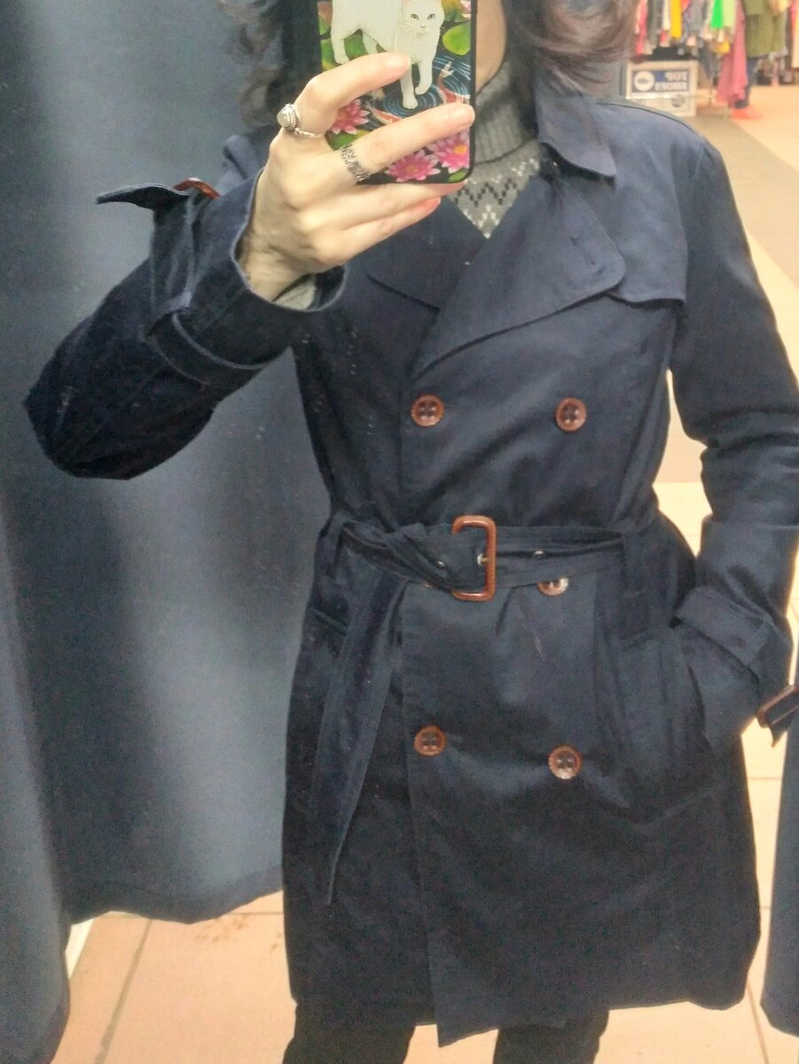 Здравствуйте, продолжу обзор из секонда Б/утик. Всё кроме люкса можно было приобрести по 2100 за кг. А в люкс я даже не заглянула, всё что там не купят появится со временем в нелюксовой одежде. Если где-то убыло, значит где-то прибыло. Так и с плащами, раз сейчас у нас висят только короткие, то где-то начали носить длинные😆. Короткий не значит плохой, я вообще не люблю длинное, исключение это зимняя одежда, но тут у меня работает инстинкт самосохранения🥶. Плащ чудесный, но короткий, на мои 155 см уже получается выше коленей. Не знаю как у вас передаётся цвет, но у меня плащ почти чёрный. И это наглая ложь!!! Он темно синий, очень красивого оттенка, ярче и насыщенные. Коричневые пуговицы и пряжка очень красиво смотрятся на нем. И бренд хороший. Сумка с двумя отделениями. Мягкая приятная кожа и нежный розовый цвет. Джинсовое платье на кнопках, прямая модель. Ткань 100% хлопок, немного тоньше, чем обычно на джинсах бывает. Удобно же, но нет пояса и нет шлевок. Однобортное пальто. Тк