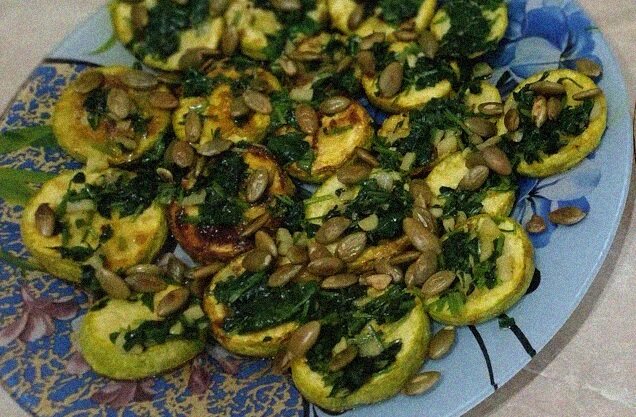 Как прекрасен кабачок, посмотри-и… Я долго думал, что кабачок — это фе, невкусно. Но когда меняешь питание, вкусовые рецепторы со временем тоже меняются. Теперь я с удовольствием ем его и просто сырым. А ещё у меня есть три классных рецепта, как приготовить кабачки. Сегодня расскажу самый простой, но оттого не менее вкусный рецепт. Так я обычно готовлю кабачок на гарнир к мясу или рыбе. Получается очень сочно. Возьмём: Приступим. 1. Кабачок порежьте кружками толщиной не менее полсантиметра, лучше не мельчить. 2. Не давайте кабачку лежать, а то он пустит сок, сразу отправляйте на сковороду. Я обычно выкладываю и сверху немного посыпаю солью. Но можно и не солить. По желанию приправьте куркумой, станет ещё полезнее и красивее, но будьте внимательны, она будет пригорать. 3. Обжаривайте недолго с обоих сторон, подзолотилось — и хватит. Постарайтесь избегать корочек, они убьют всю пользу кабачка. 4. Иногда я просто посыпаю свежим чесноком и сразу ем. Но можно насытить кабачок ароматом. Для